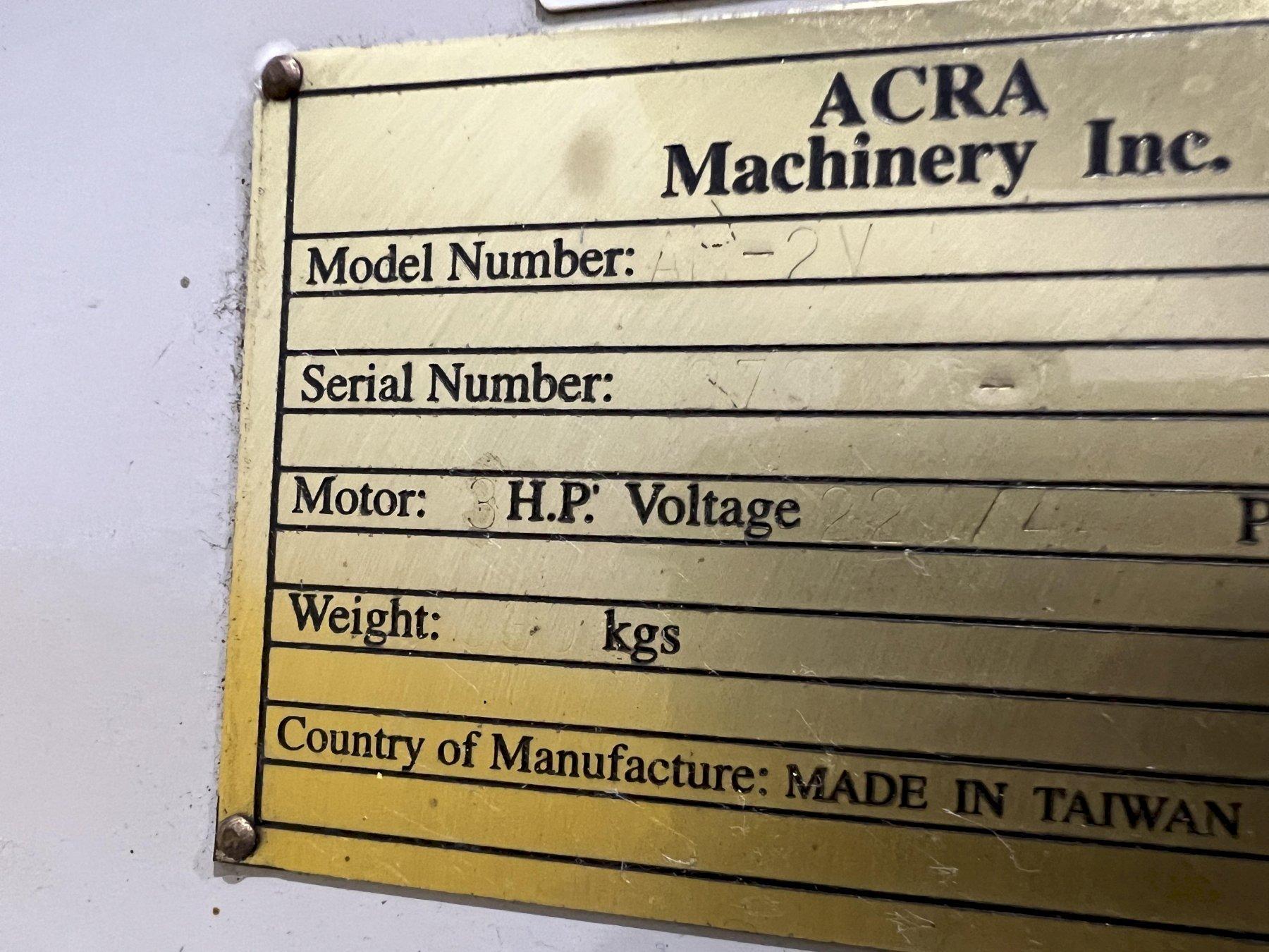 3 HP ACRA MODEL #AM-2V VERTICAL RAM TYPE KNEE MILL: STOCK #18827