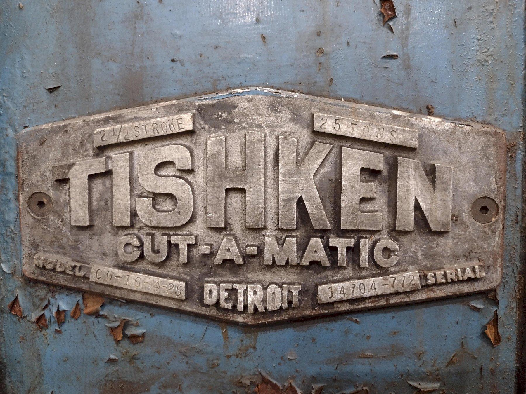 25 TON TISHKEN 4-POST CUTOFF PRESS, 2.5" STROKE: STOCK #19251