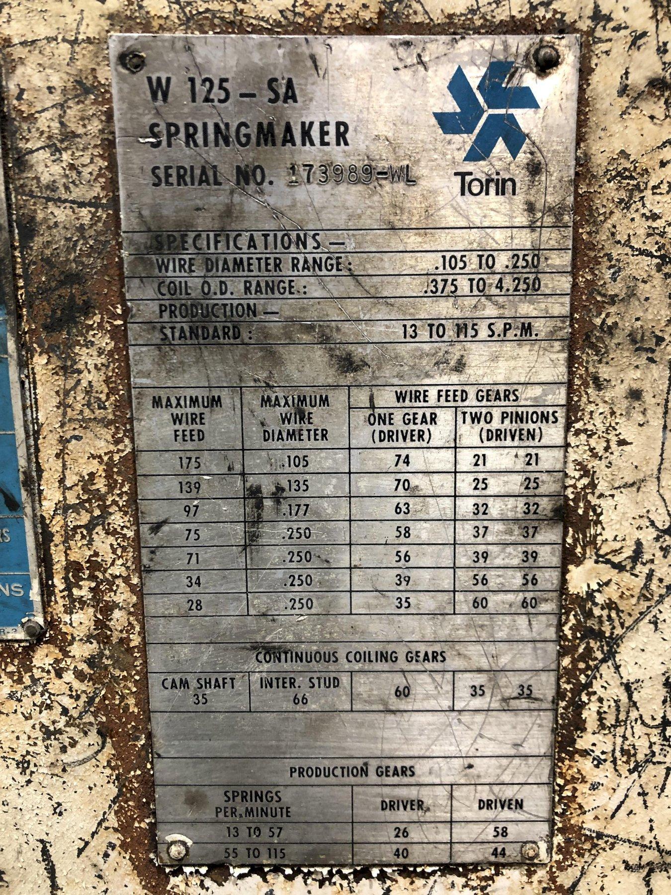 TORRINGTON MODEL W125-SA SPRING COILER / COIL MAKING MACHINE: STOCK #18982