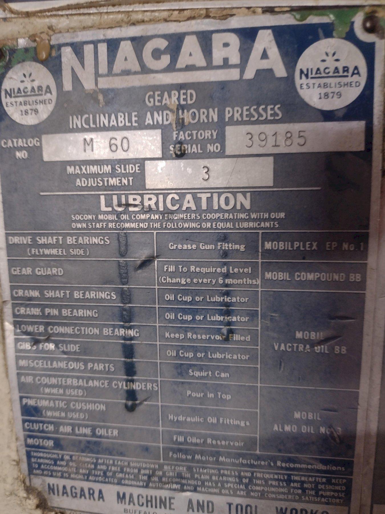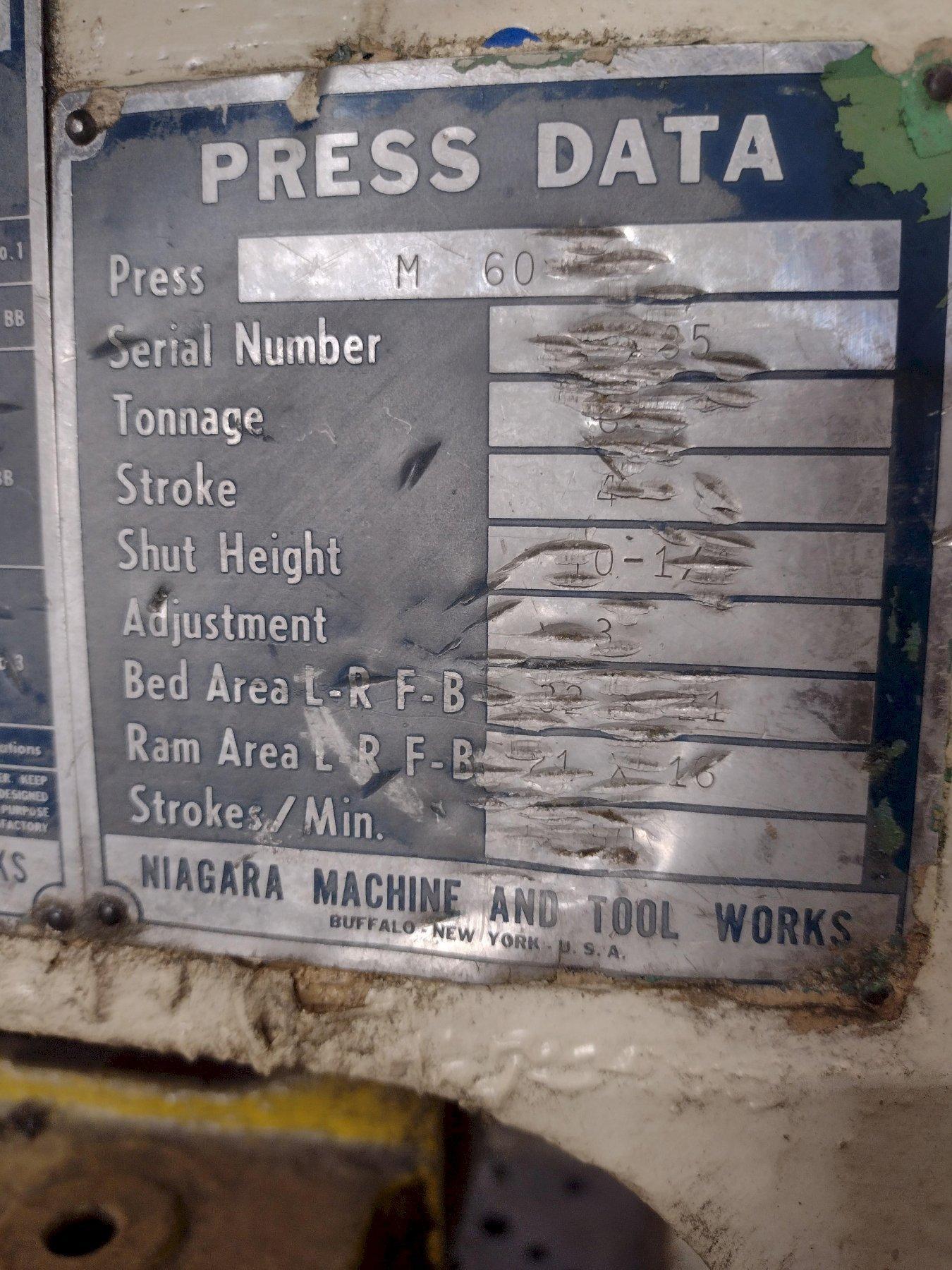 60 TON NIAGARA MODEL #M60 OBI STAMPING PRESS, 4" STROKE: STOCK #19179