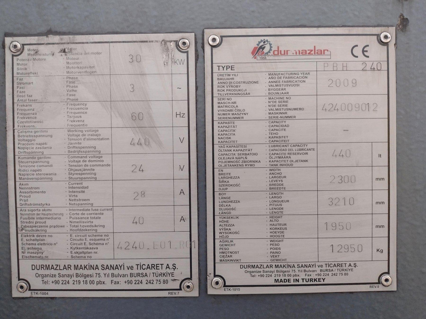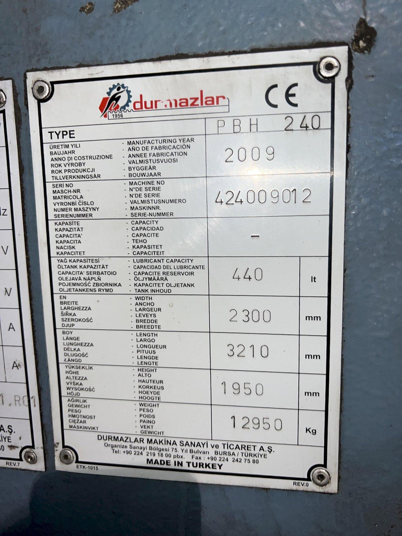 6" X 6" X 3/4" DURMA MODEL #PBH240 HYDRAULIC ANGLE BENDING ROLL, NEW 2009: STOCK #16892