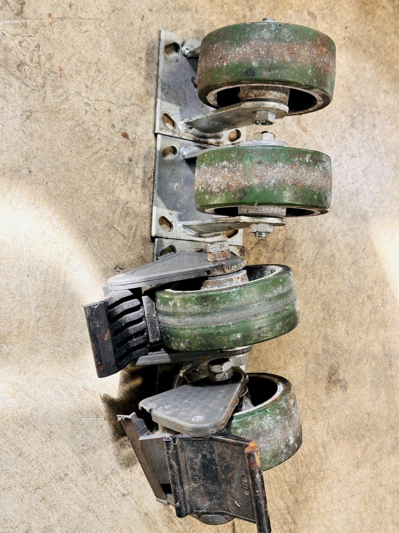 There are wheels included in the sale(seen in photos), they where removed to make the unit easier to transport. |