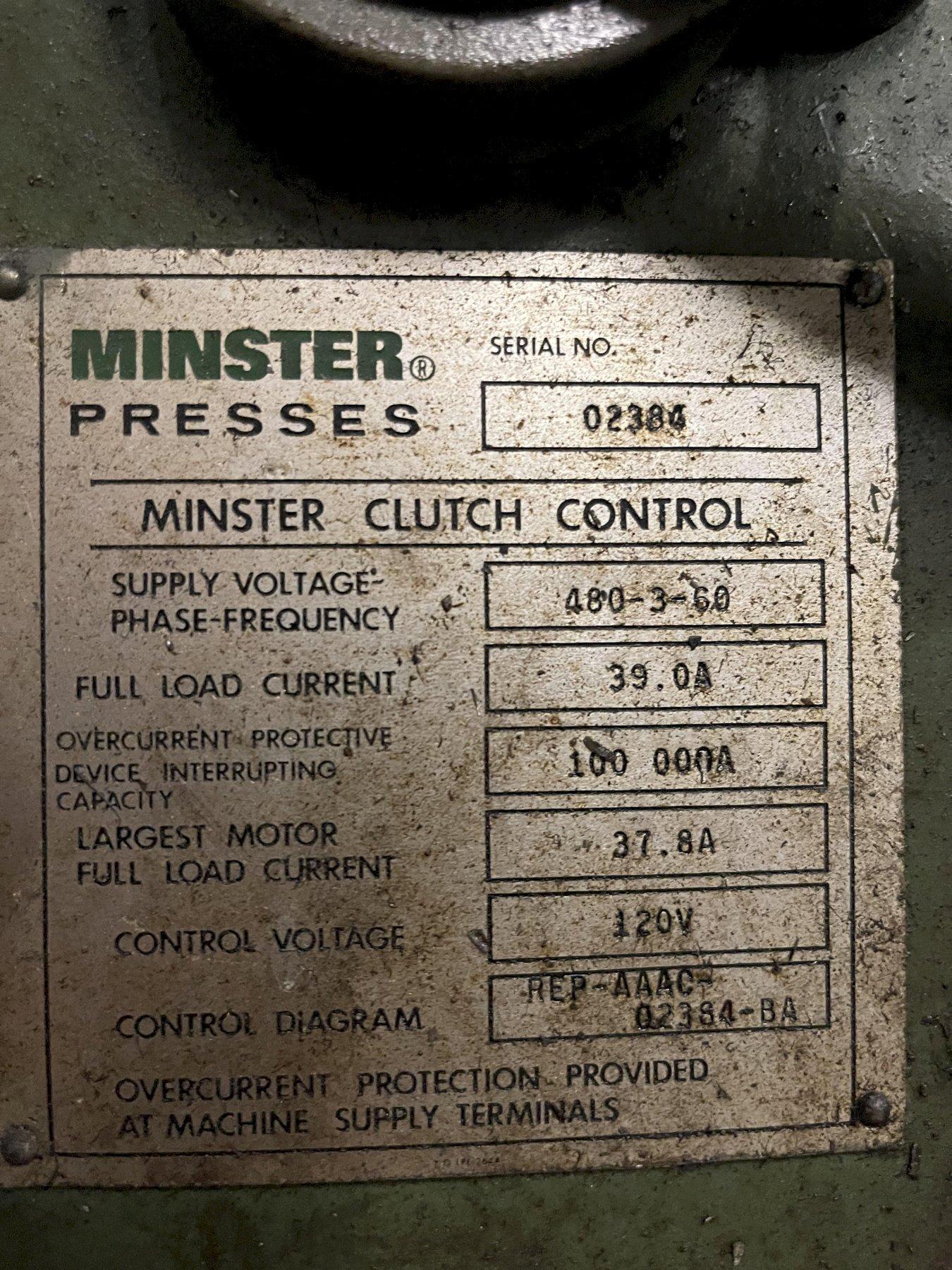 600 TON MINSTER MODEL #90-600 KNUCKLE JOINT KJ PRESS, 6" STROKE: STOCK #18998