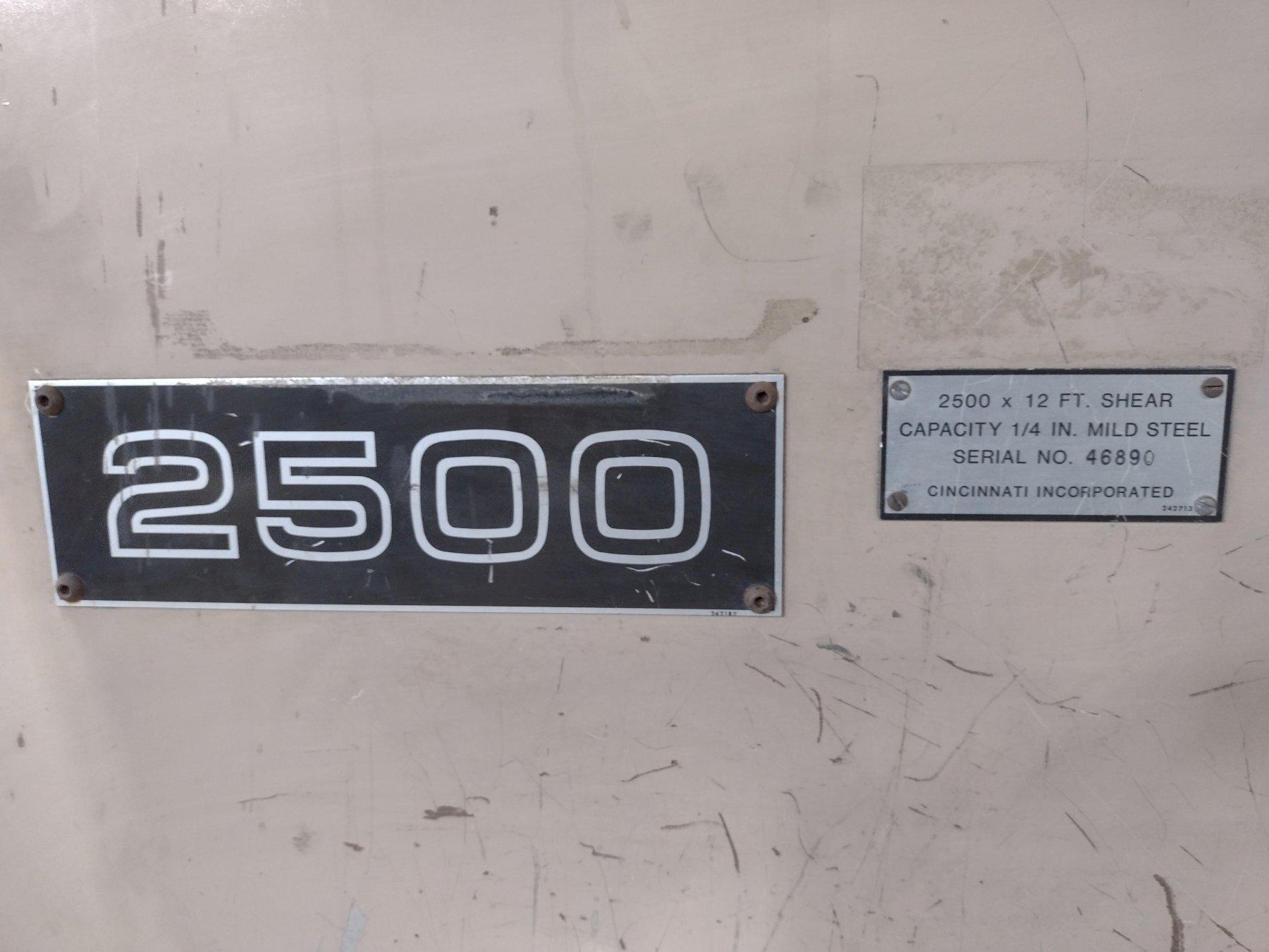 12' x 1/4" CINCINNATI MODEL #2500X12 FSU-II HYDRAULIC POWER SQUARING SHEAR: STOCK #18209