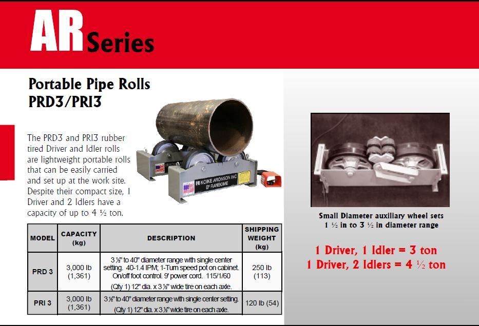 3,000 LB ARONSON MODEL #PRD3/PRI3 POWERED TANK TURNING ROLLS: STOCK #17960