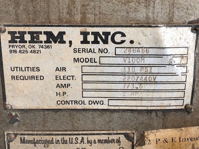 HEM vertical bandsaw model V100M, Tilt frame, Coolant system, 45 degree tilting head left or right, 2 HP variable speed blade drive