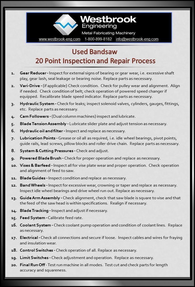 We put our Bandsaws through a 20 Point Inspection and Repair Process assuring immediate performance when they hit your floor.