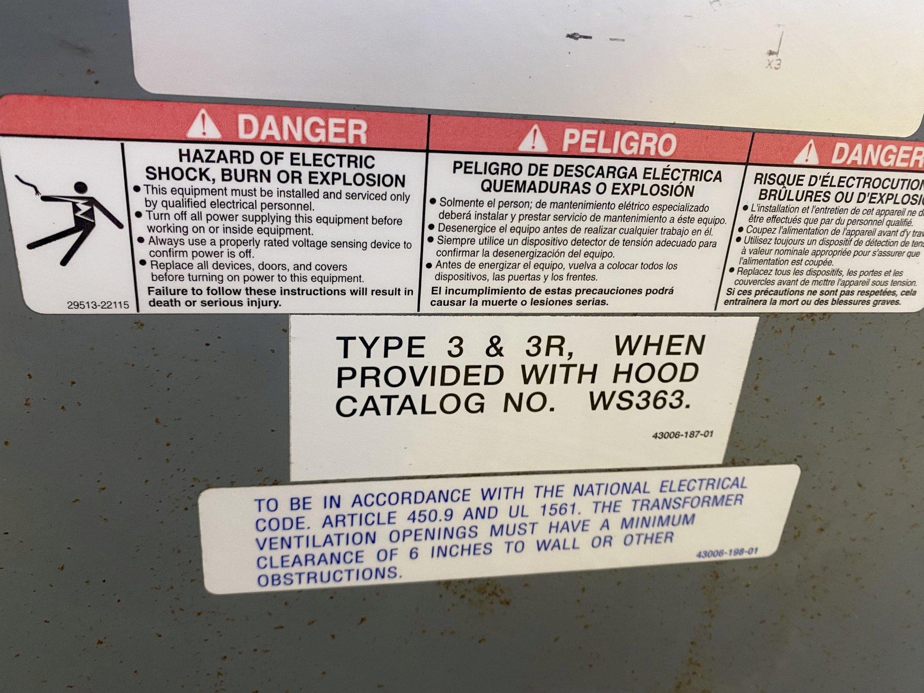 30 KVA SQUARE D 480 - 208Y/120 VOLT ELECTRICAL TRANSFORMER: STOCK 18911