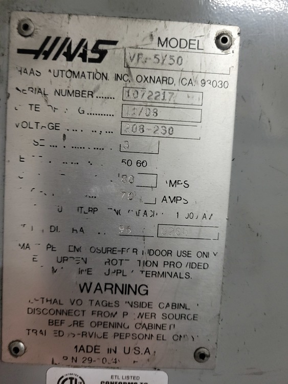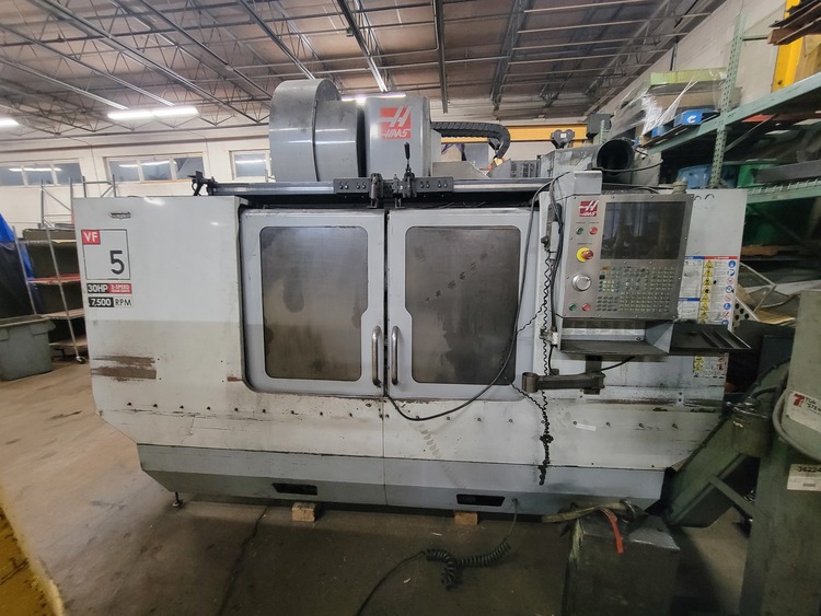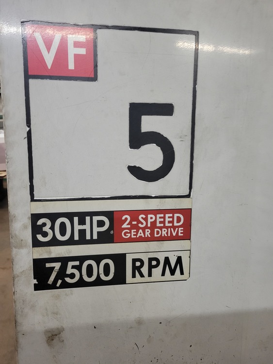 Haas Heavy duty VF-5 #50 Taper, with 4 xis drive, Side mount 30 ATC, Remote MPG with screen, 7,500 PRM, 30 H.P., P Cool, Chip Auger, Internal transformer
