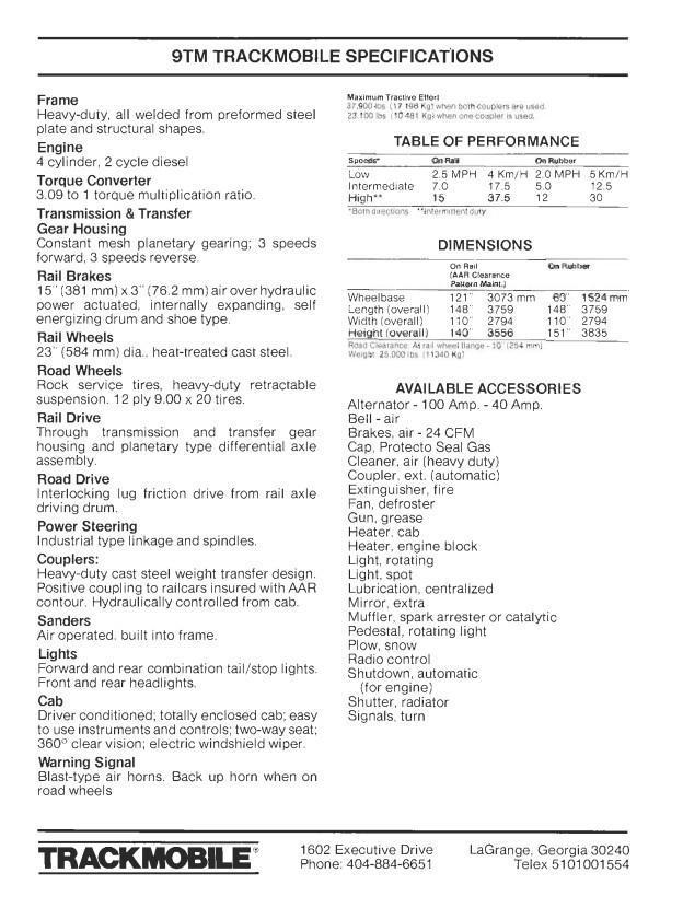 TRACKMOBILE MODEL #9TM RAILCAR MOVER: STOCK #20764