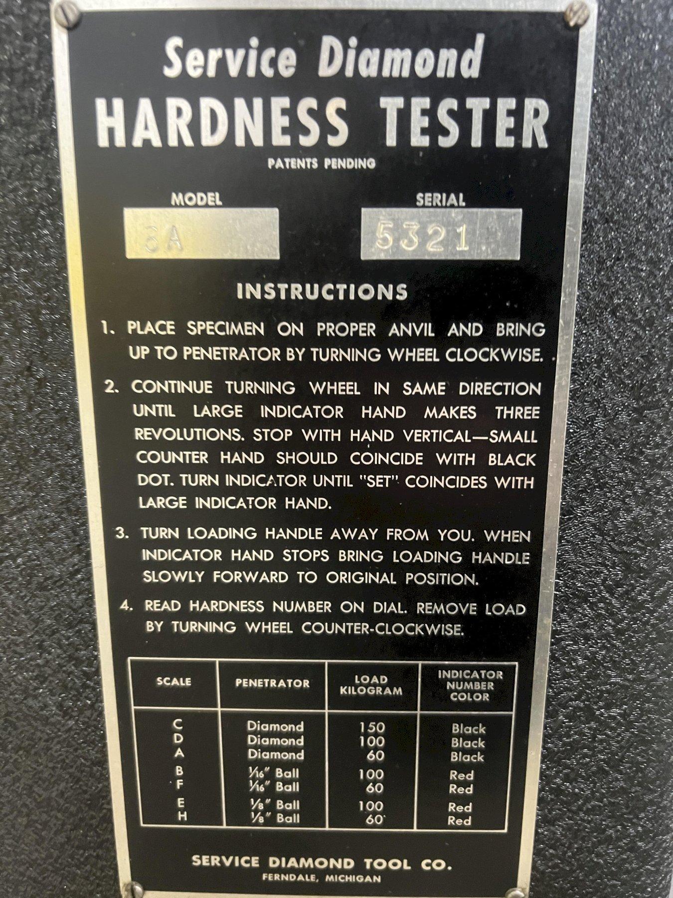 SERVICE DIAMOND (LOUIS SMALL) MODEL #8A HARDNESS TESTER: STOCK #20716