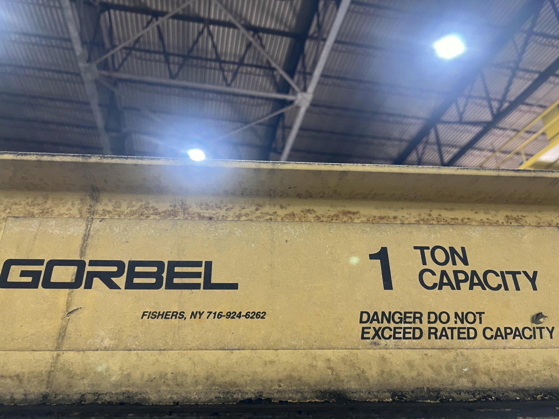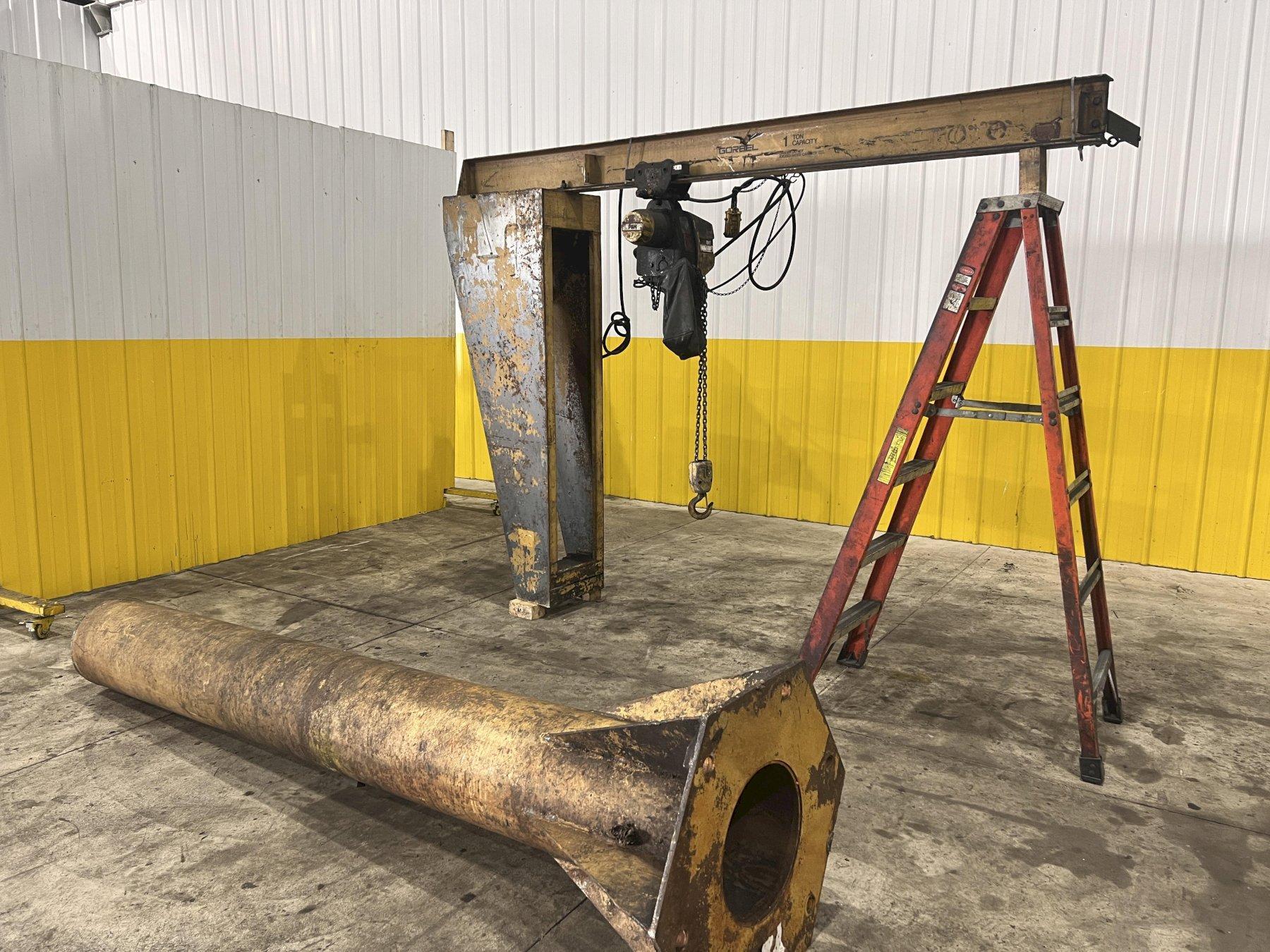 2000 LB (1 TON) X 9' X 10' H GORBEL FREE STANDING JIB CRANE & P&H POWERED CHAIN HOIST: STOCK #20