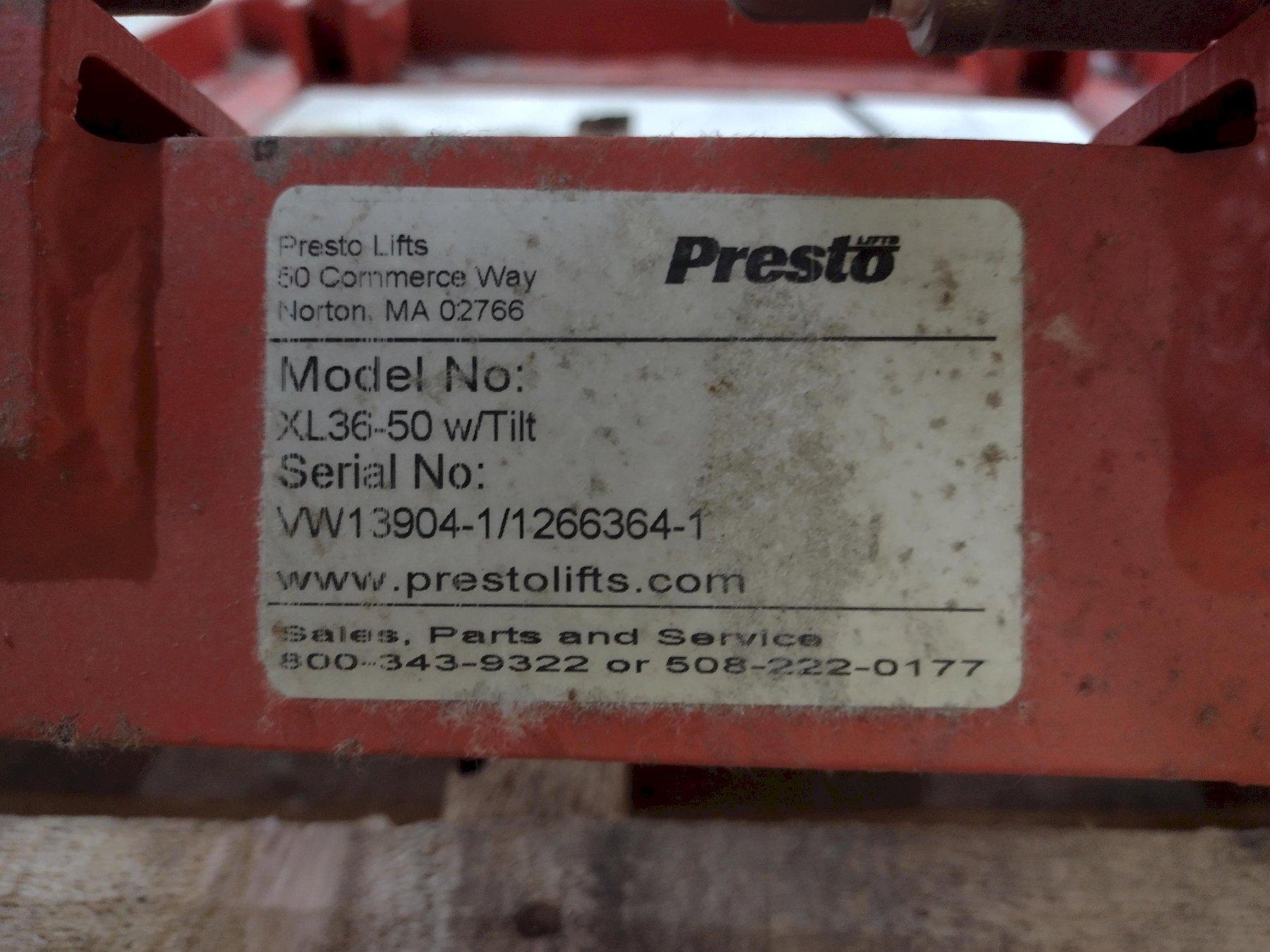 2,000 LB PRESTO PALLET MODEL #XL36-50 W/ TILT LIFT TABLE: STOCK #20162