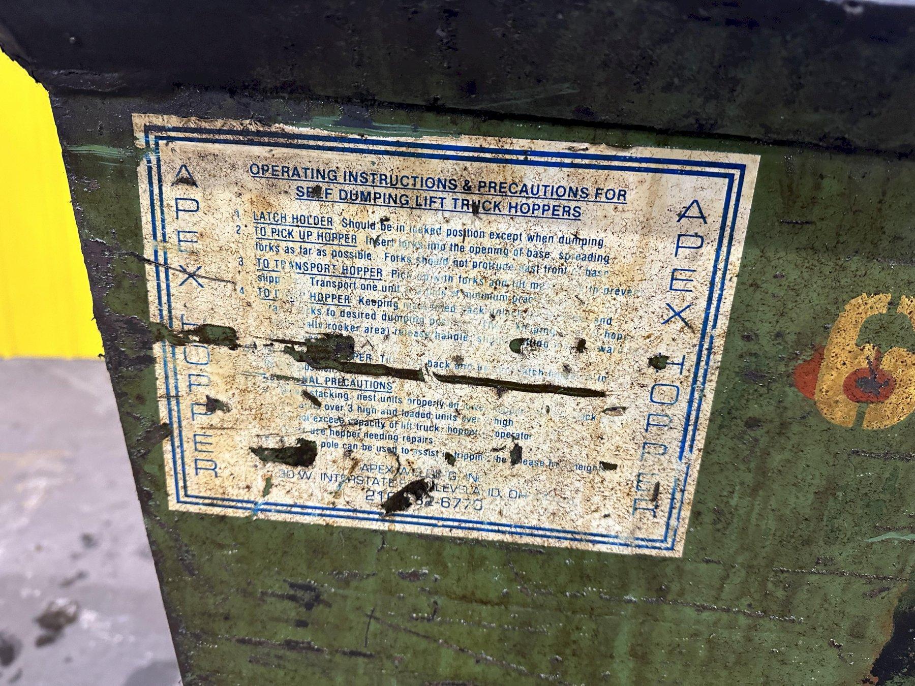 60" X 36" X 36" APEX PORTABLE DUMP HOPPER ON CASTERS: STOCK 20073
