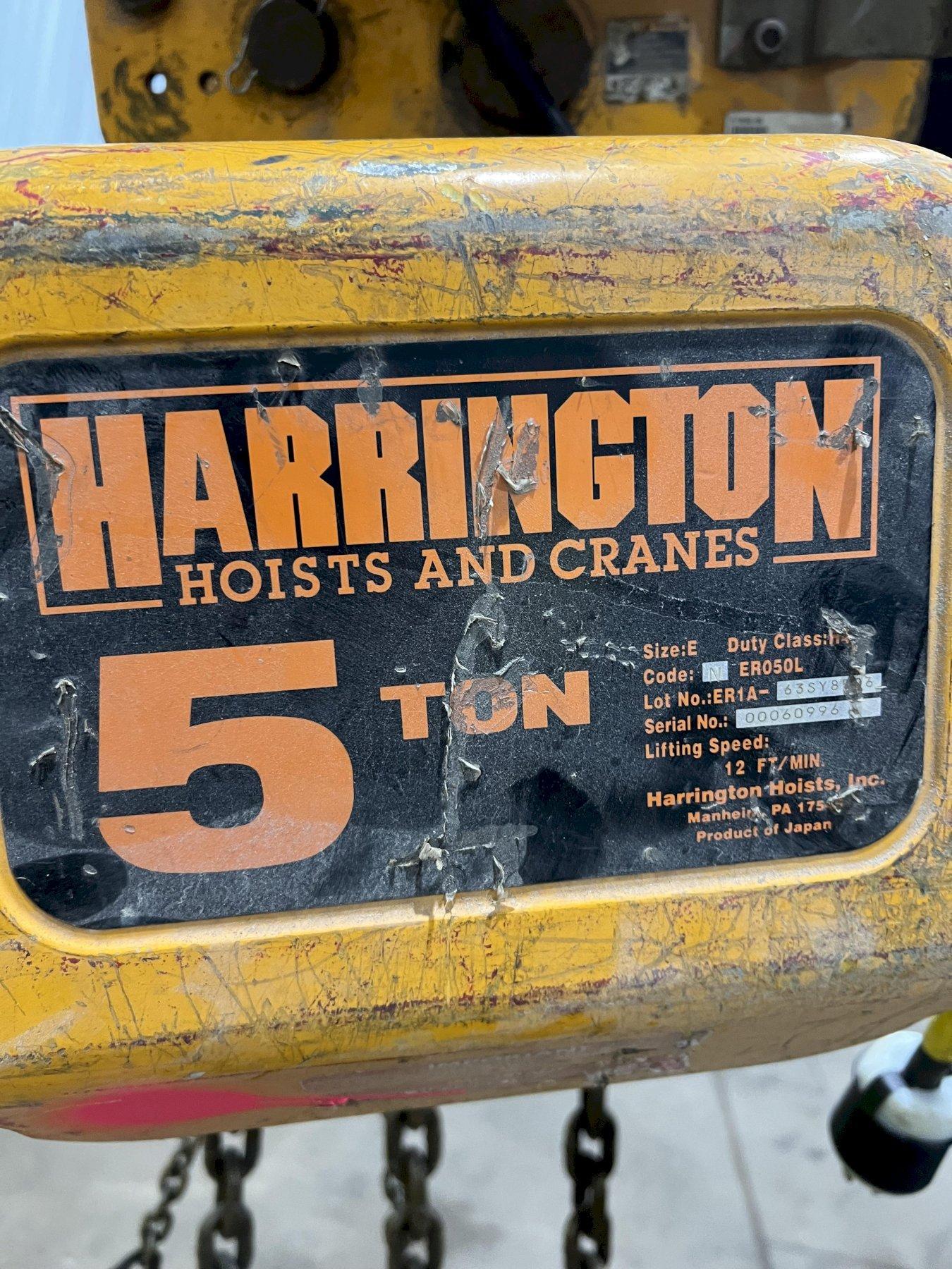 10,000 LB (5 TON) HARRINGTON MOTORIZED CHAIN HOIST W/ POWER TROLLEY: STOCK #19954