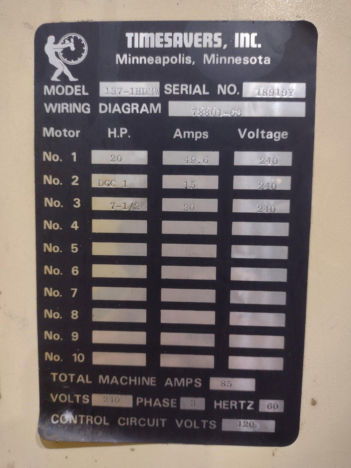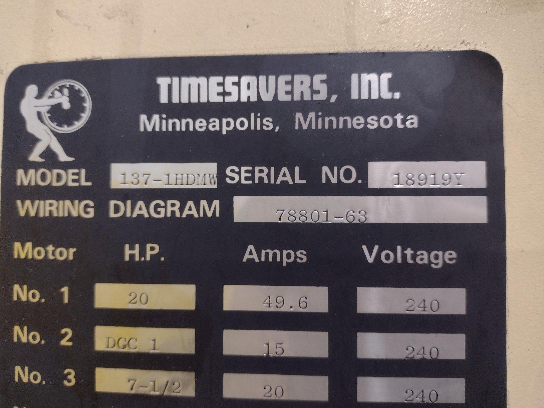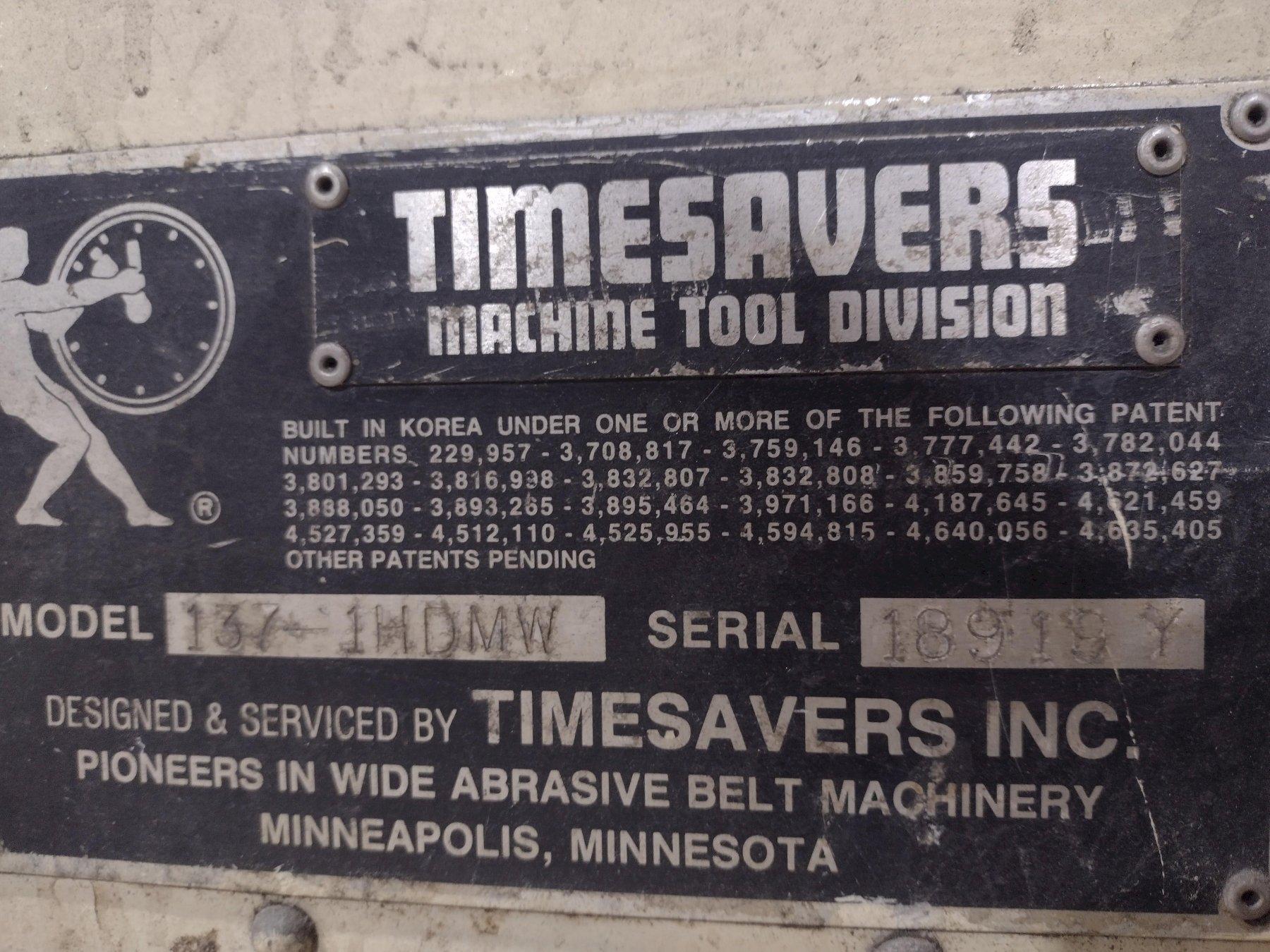 37" TIMESAVERS MODEL #137-1HDMW WET BELT GRINDER SANDER: STOCK #19869