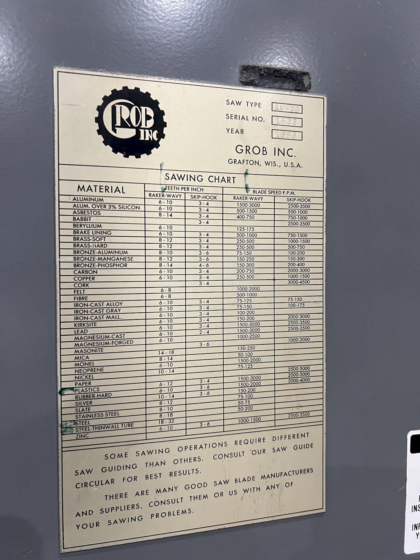 36" GROB MODEL #4V-36 VERTICAL BAND SAW: STOCK 19834