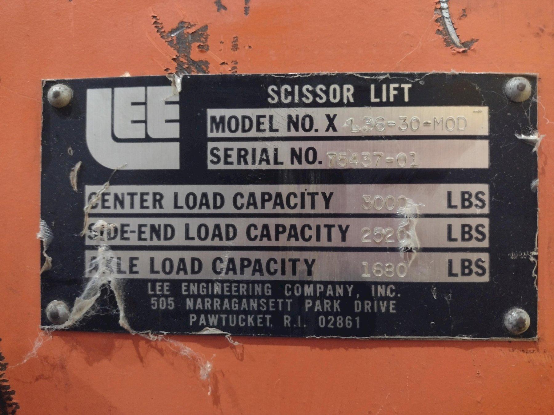 3,000 LBS X 32" X 56" MODLE #L36-30-MOD PRESTO HYDRAULIC SCISSOR LIFT TABLE, SINGLE PHASE 110V: