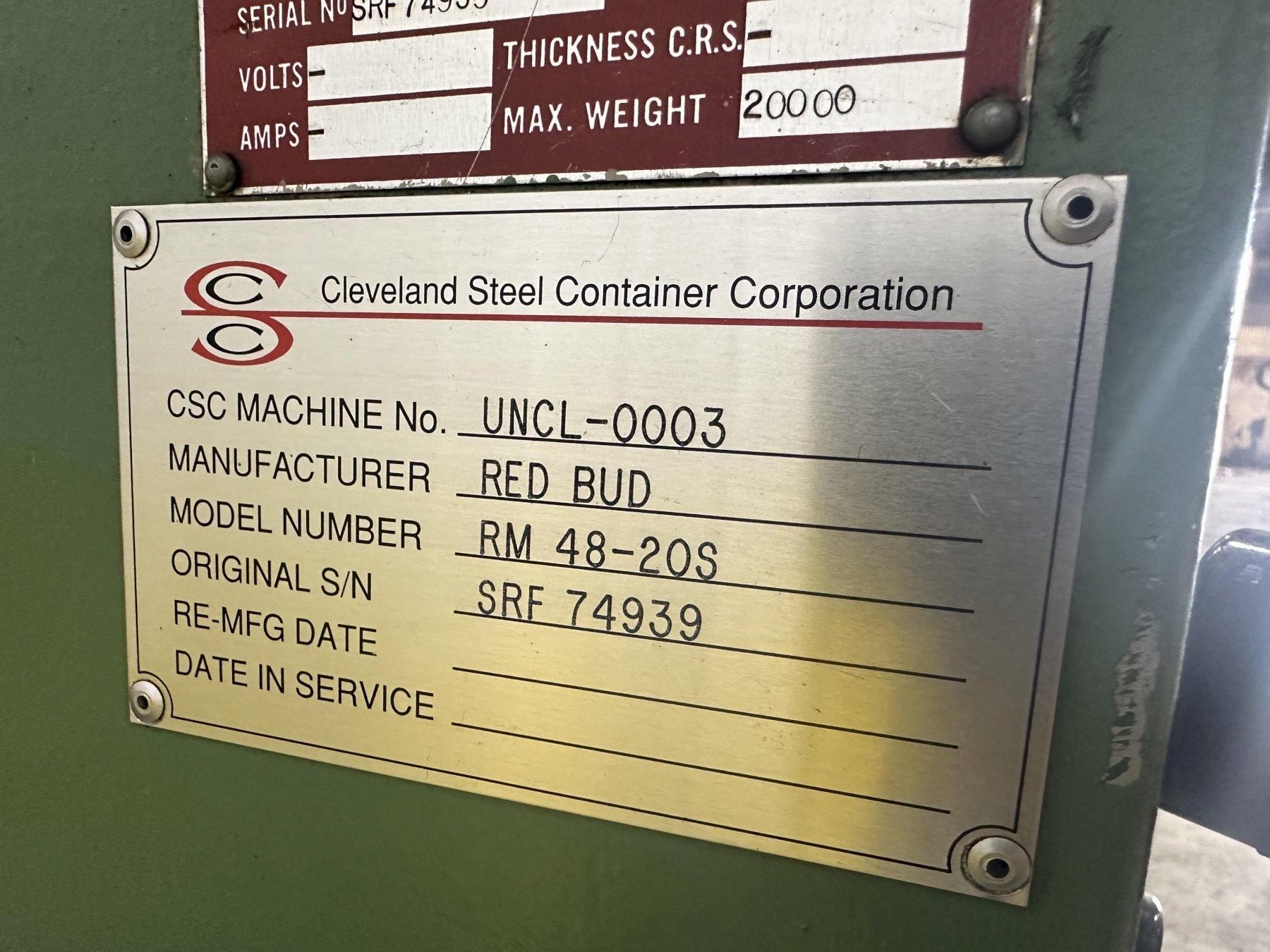 20,000 LB X 48" RED BUD RBI MODEL #RM48-20S COIL REEL UNCOILER & CAR: STOCK #19764