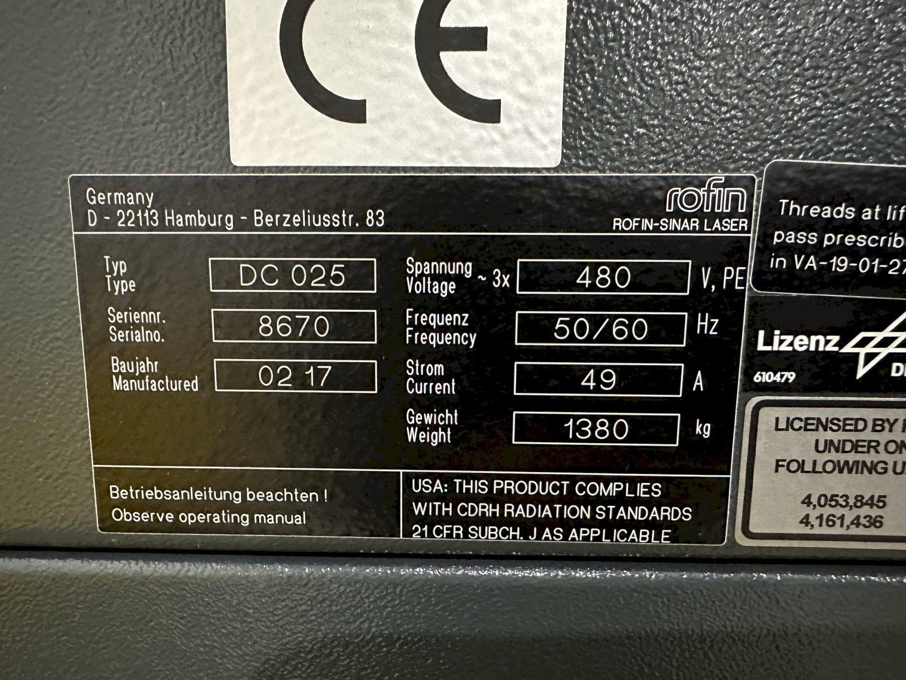 2500 WATT ROFIN LASER (NEW IN 2017) MODEL #DC025 POWER SUPPLY PROCESSING UNIT: STOCK #19760