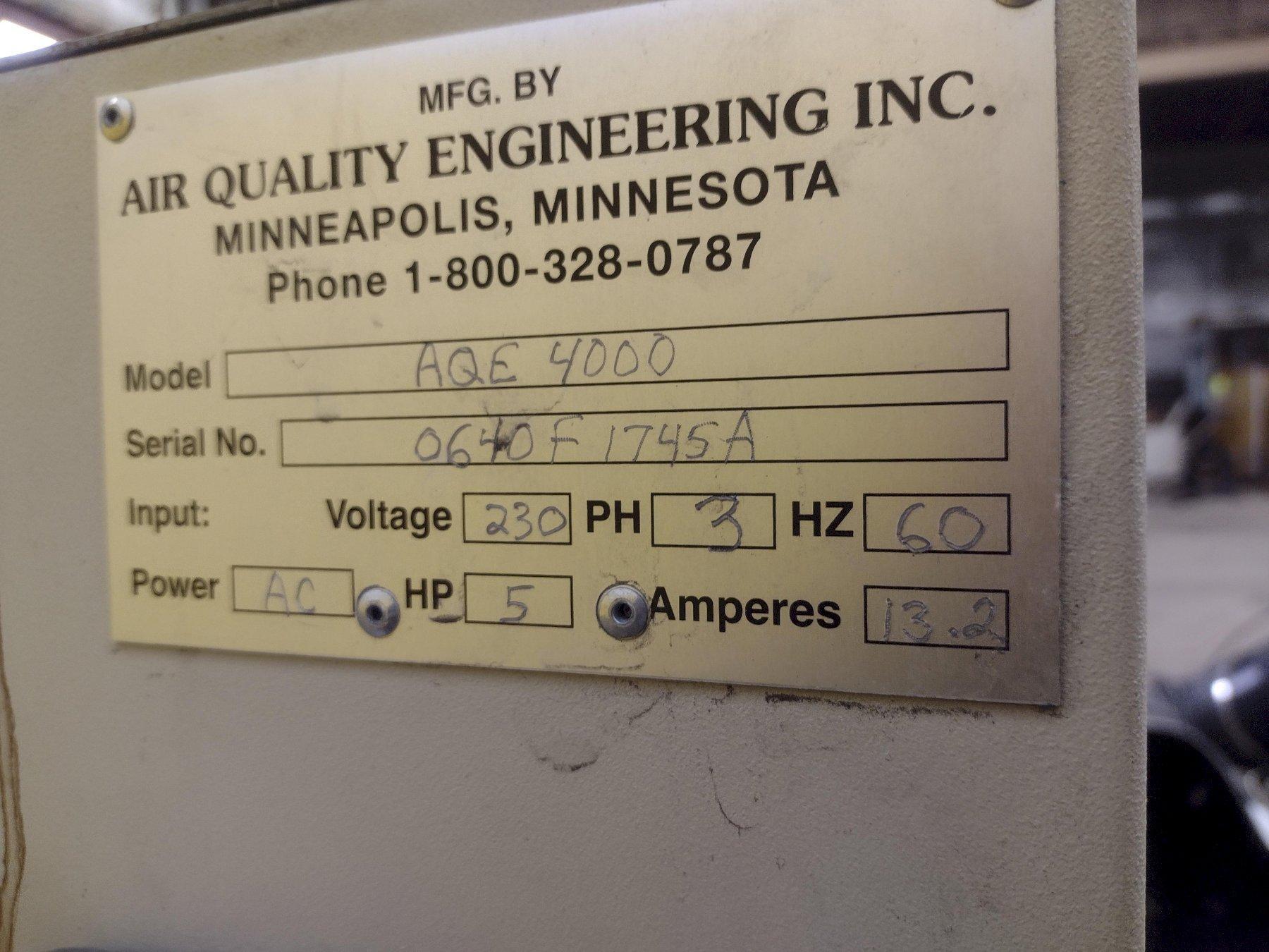 2,500 CFM 5 HP AIR QUALITY ENGINEERING MODEL #AQE4000 FUME COLLECTOR: STOCK #19643