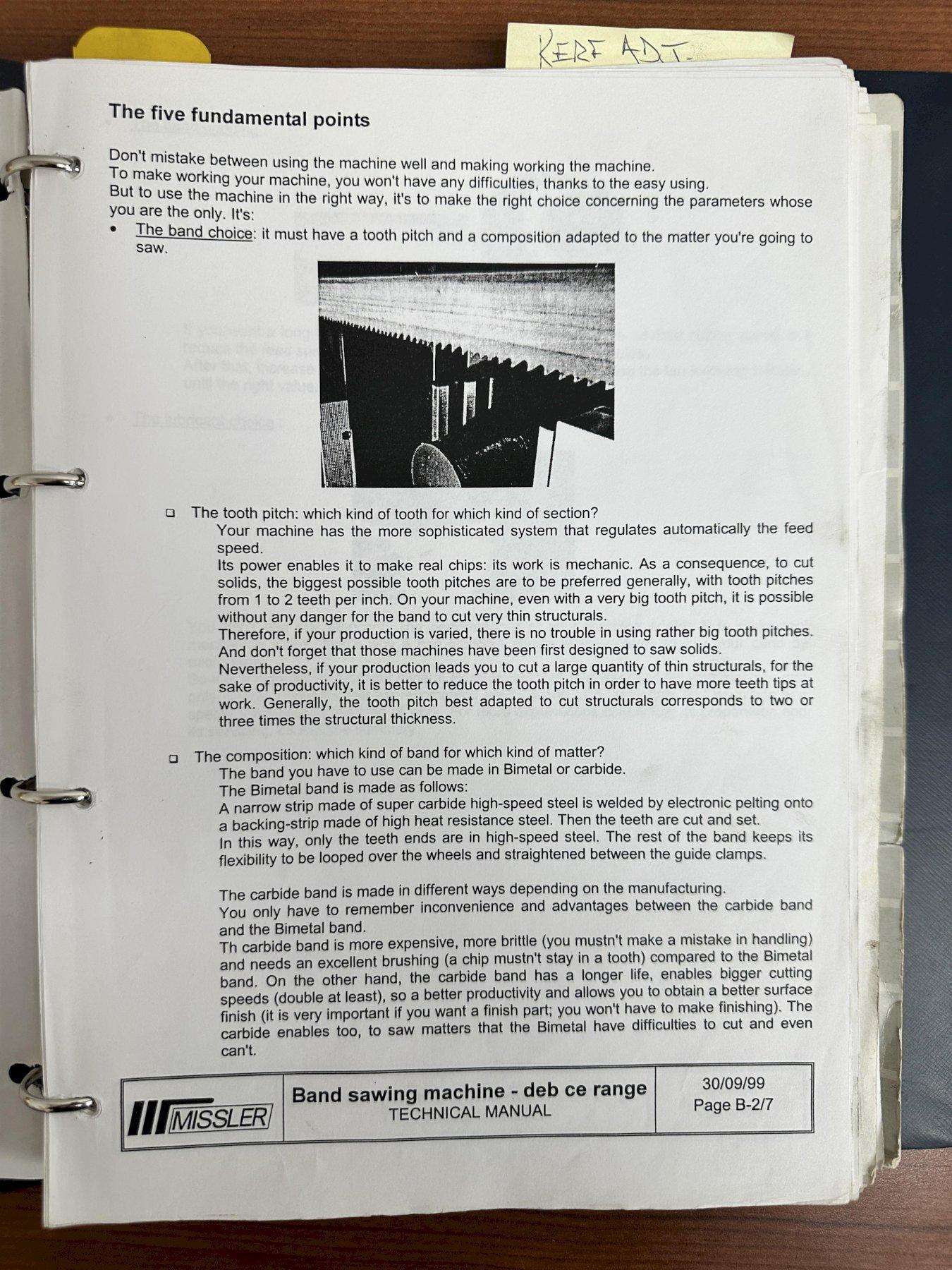 BLADE DIMENSIONS ..................... 34 X 1.1 X 5000, 1-1/4" X 0.042" X 16'-0.84"