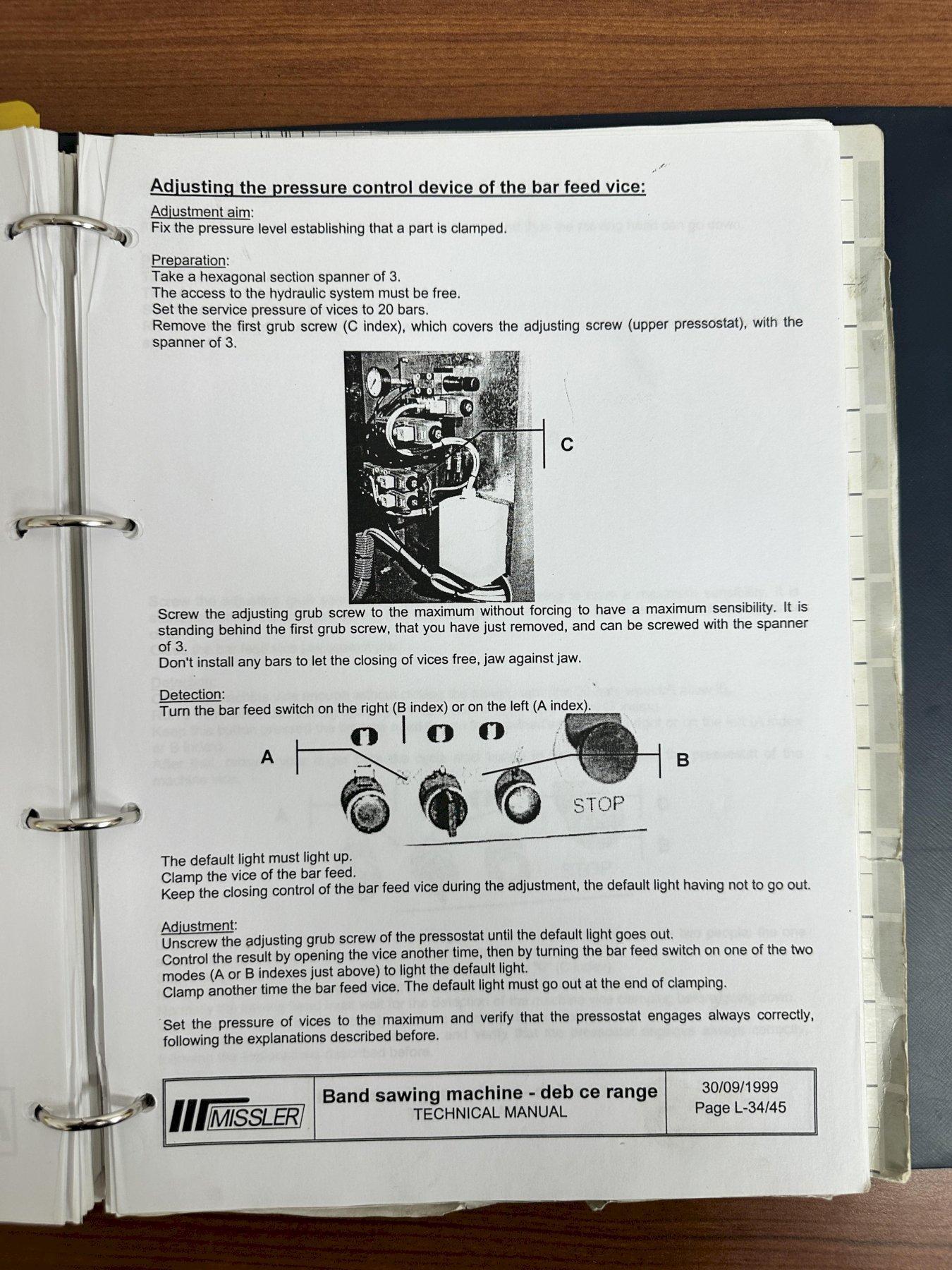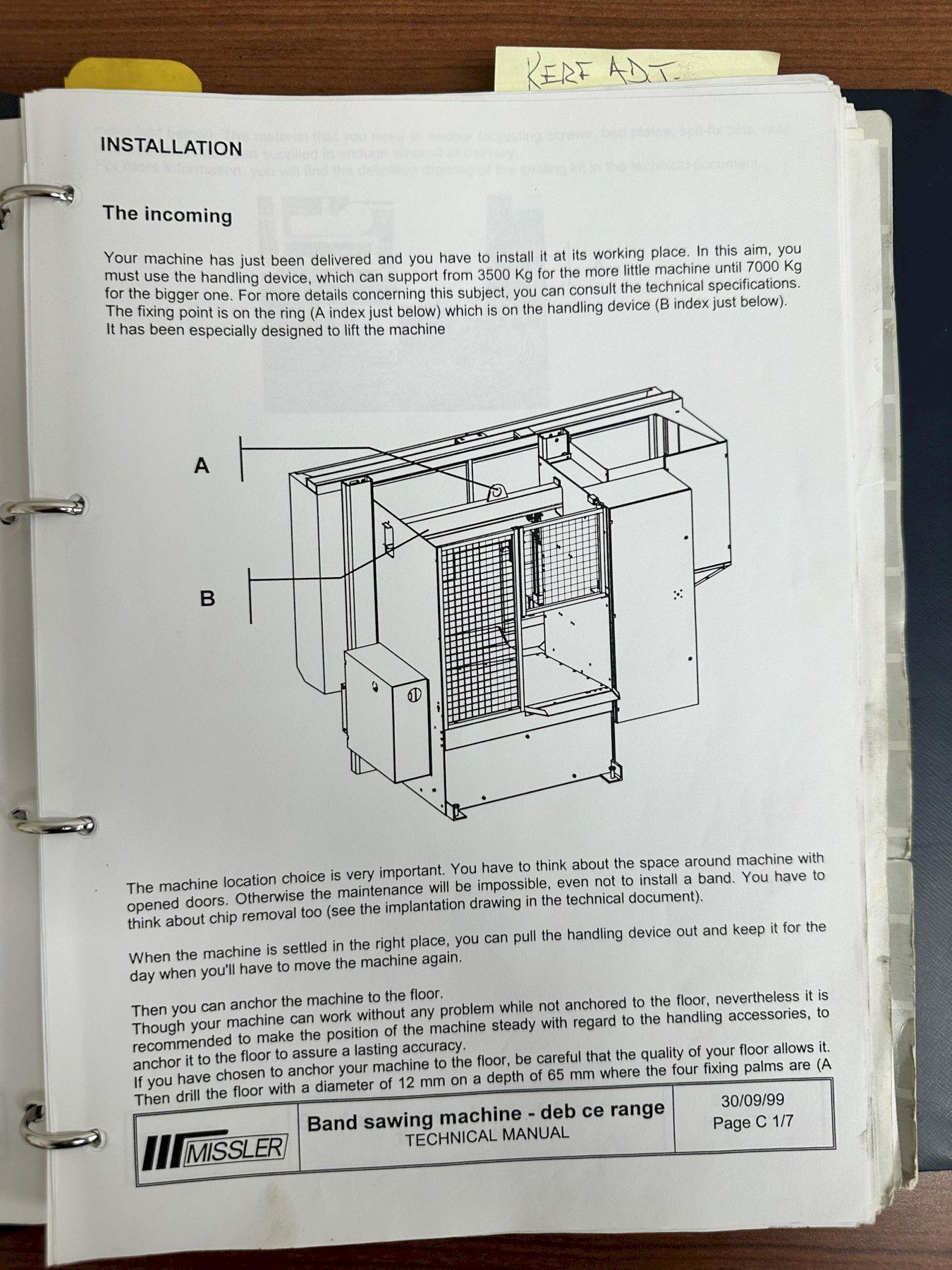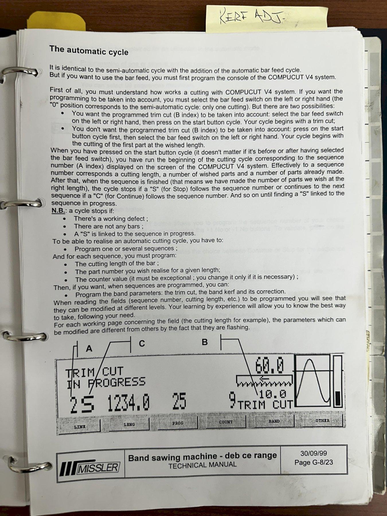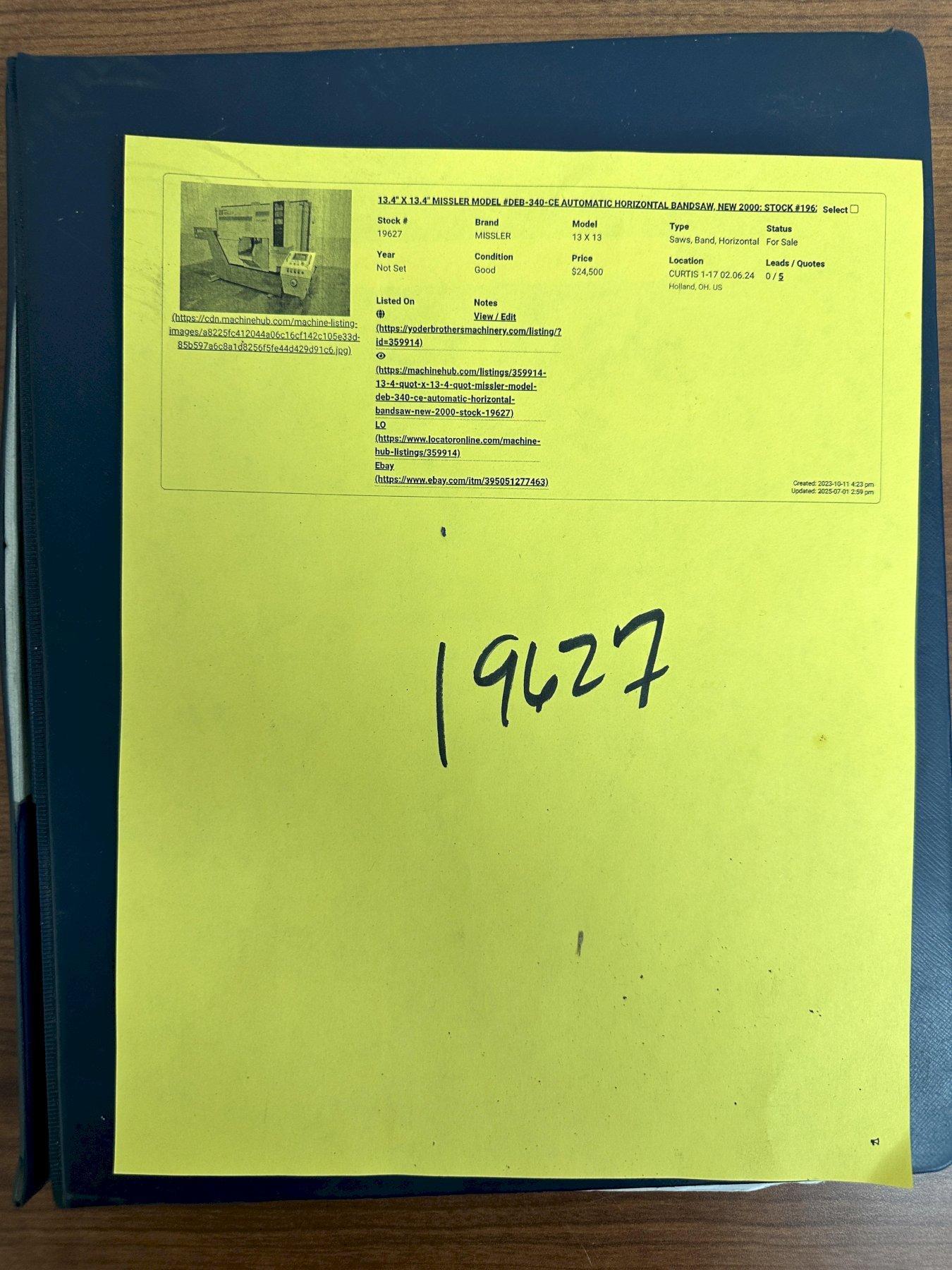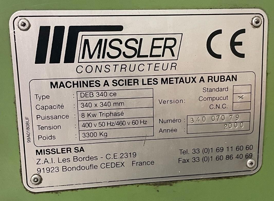13.4" X 13.4" MISSLER MODEL #DEB-340-CE AUTOMATIC HORIZONTAL BANDSAW, NEW 2000: STOCK #19627