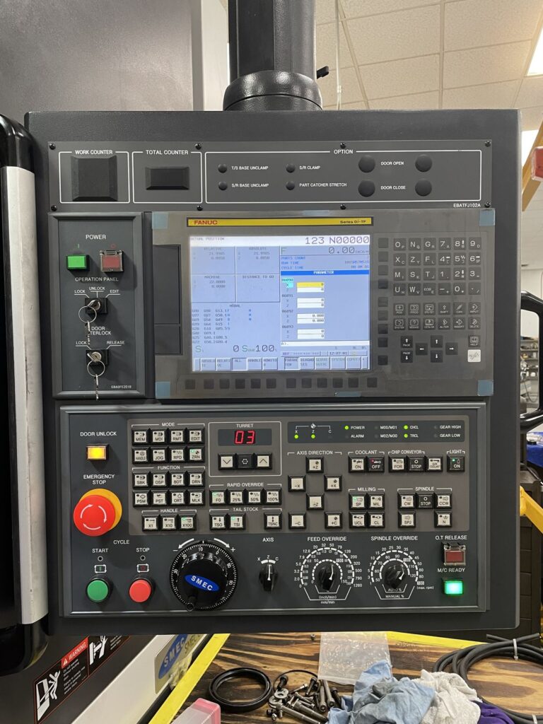 Fanuc Oi Series CNC Controller, 15″ 3 Jaw Chuck, 12 Position Tool Changer, CR Machinery Chip Conveyor,