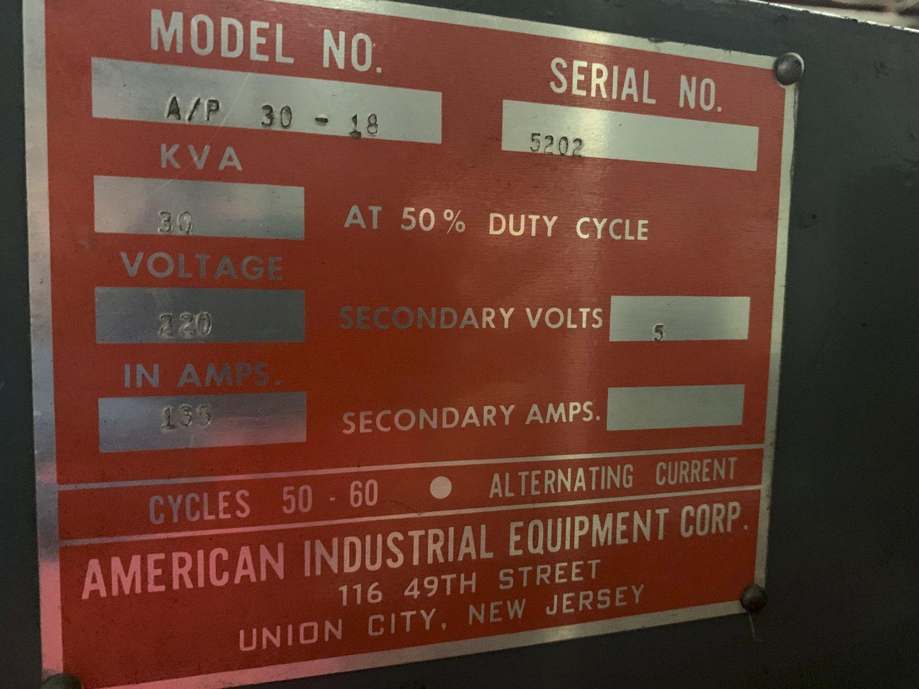 30 KVA American Industrial Resistance Welder Model A/P 18-30