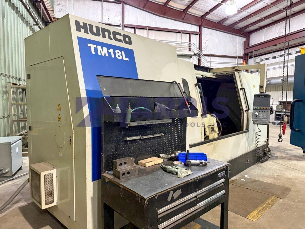 Hurco Slant Bed CNC Lathe Model TM18L with 6" hole, 18" Hydraulic Chuck and Hurco Max controls