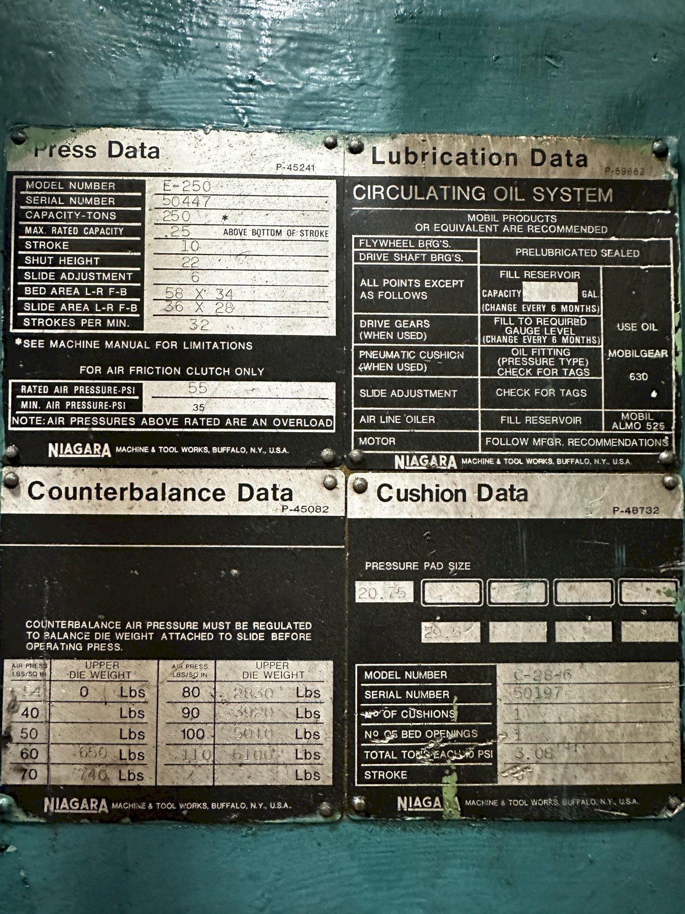 250-ton Niagara Single Point Gap PressNiagara Press Model E-250