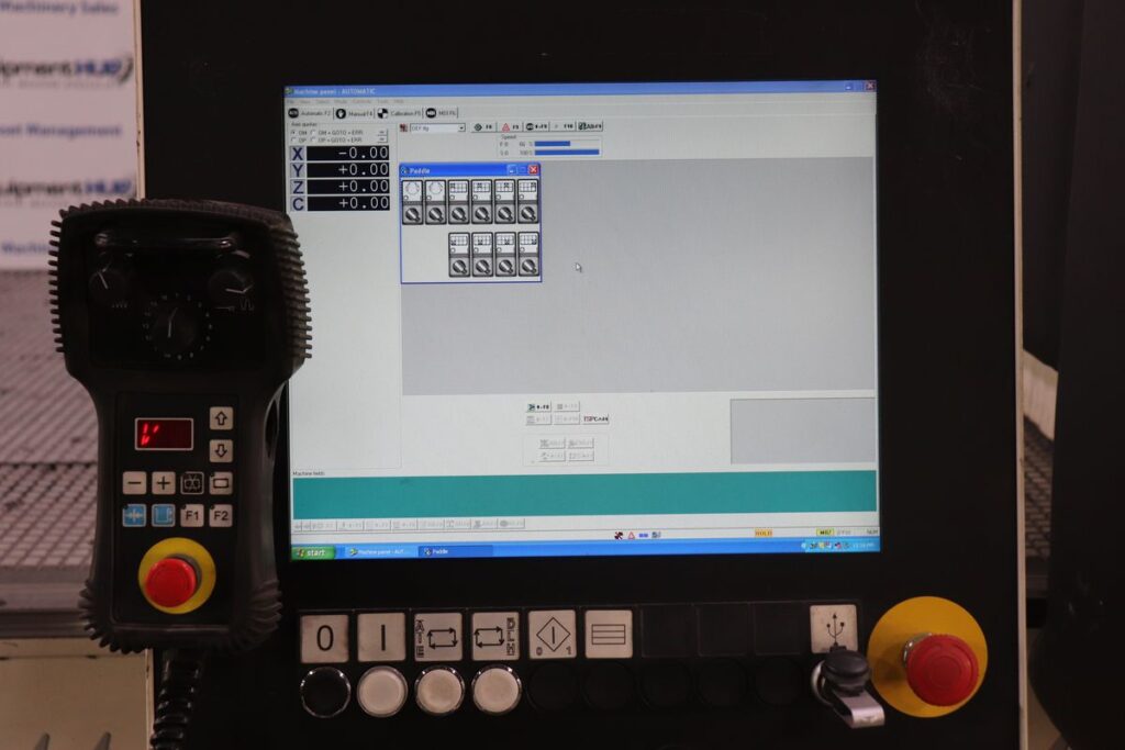 5′ x 12′ Aluminum Table, Carousel Tool Changer, Pop-Up Pins, Remote Pendant, Misc. Tooling, 230V to 400V Transformer