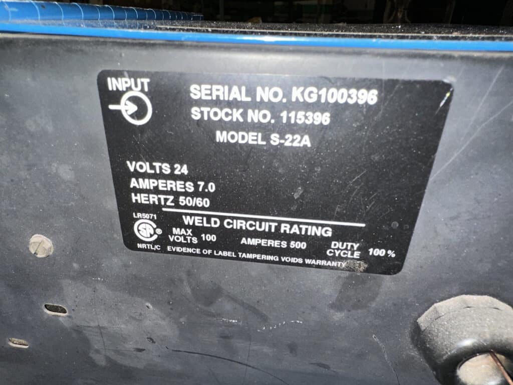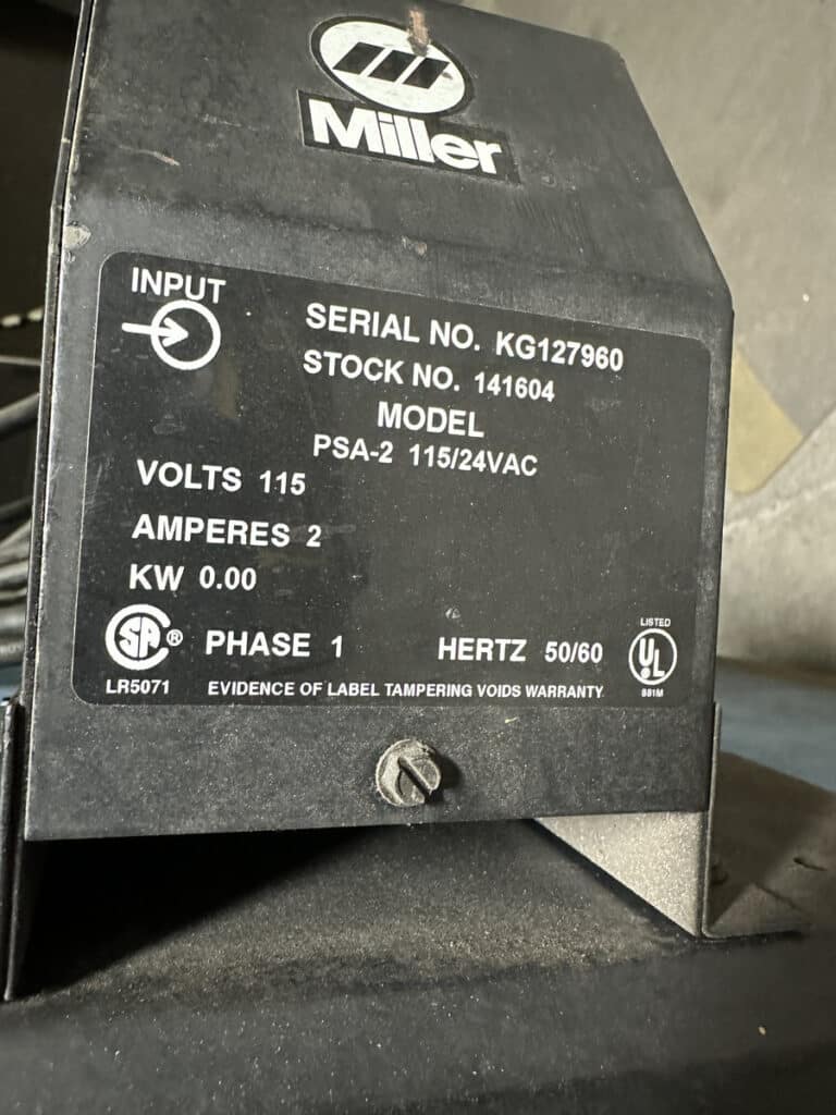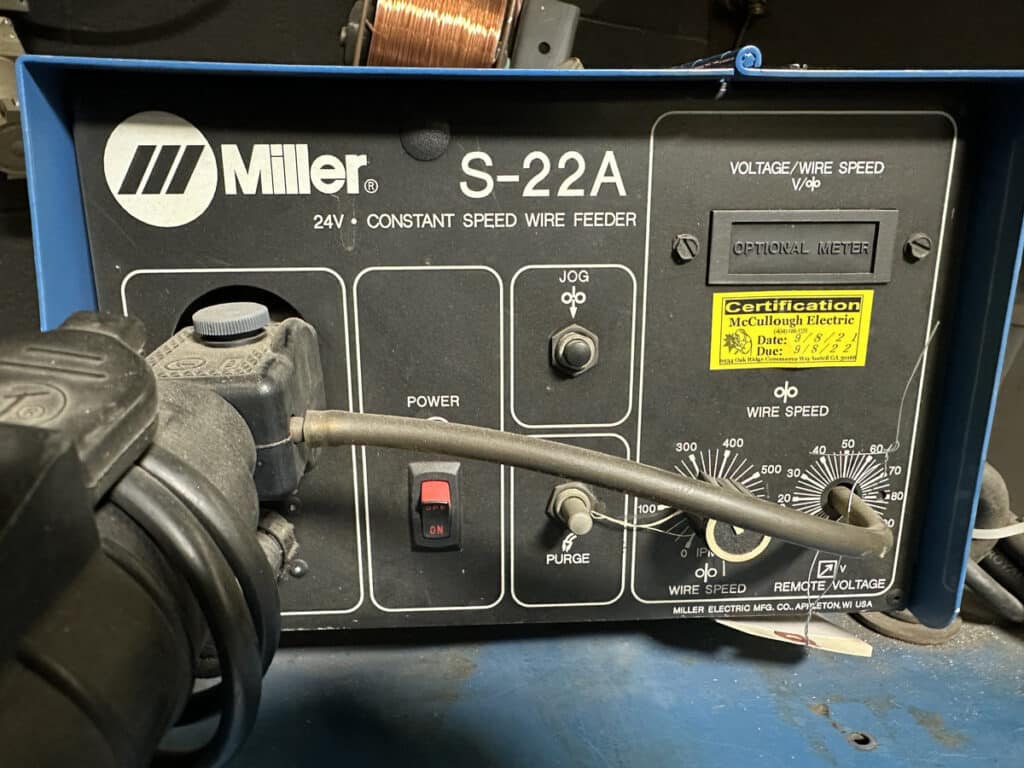 Miller S-22A Wire Feeder, PSA-2 Wire Feed Control, TWECO Mig Weld Gun, Welder Cart