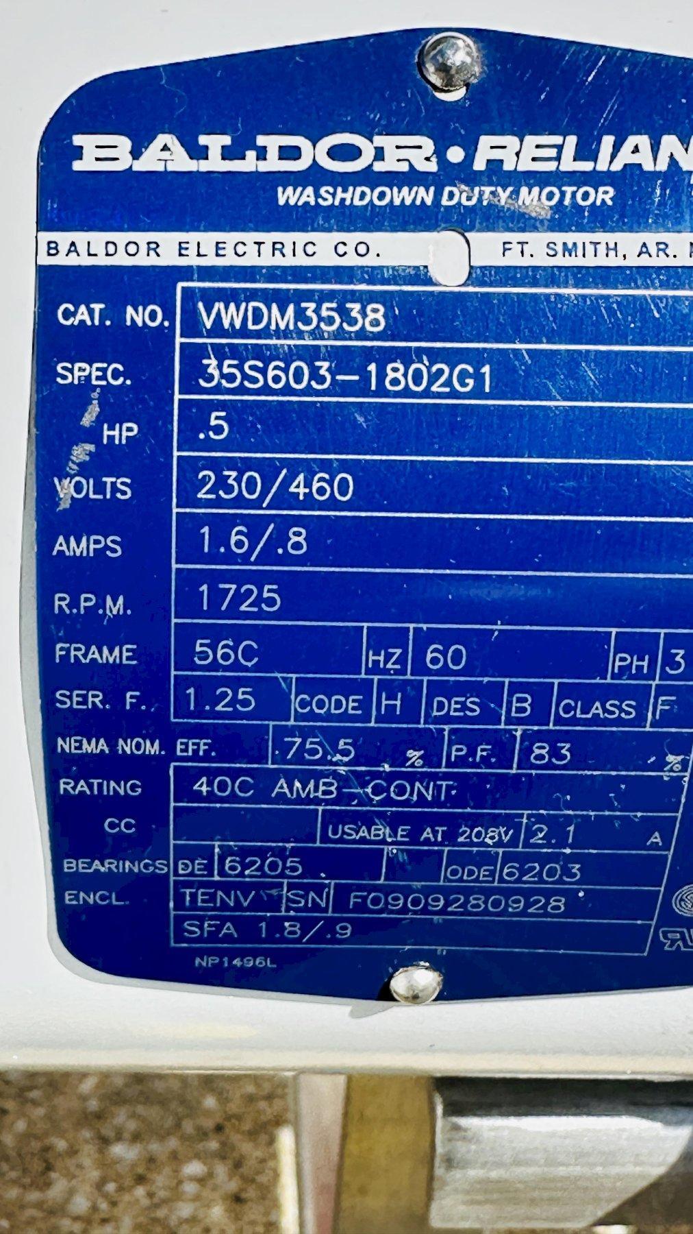 .33hp | 230V/460V / 1.6 / .8amp / Three Phase, 50/60 Hz |