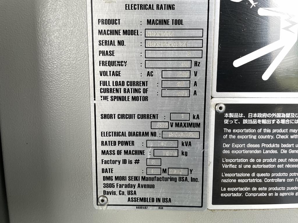 M730BM Control with MAPPS,1000 PSI Through Spindle Coolant , 12,000 RPM Spindle, CAT40, Chip Conveyor, Full 4th Axis, Toolsetter, Spindle Chiller, 120 Station Twin-Arm Toolchanger, Rear Discharge Chip Conveyor, 5 Pallets