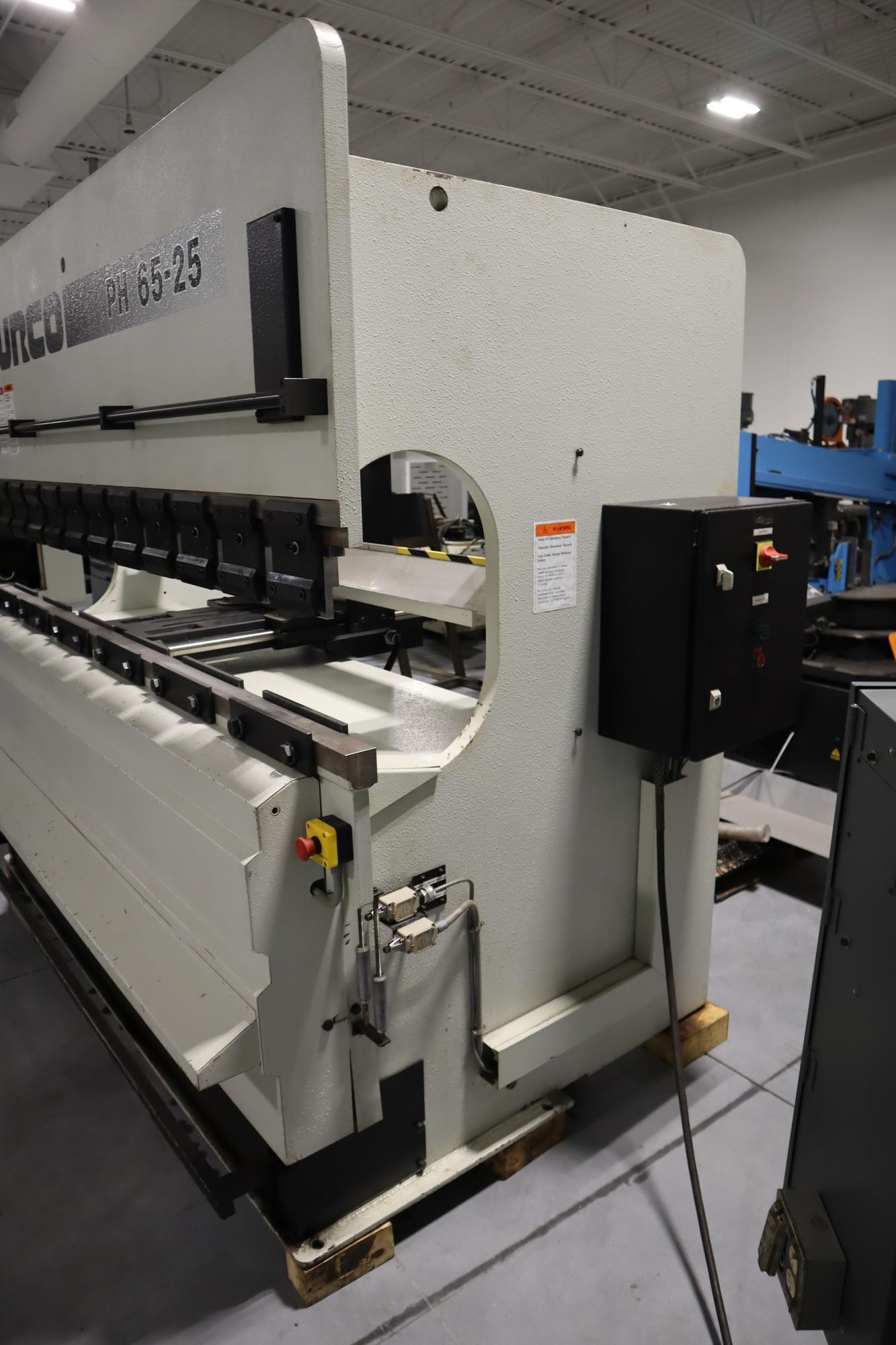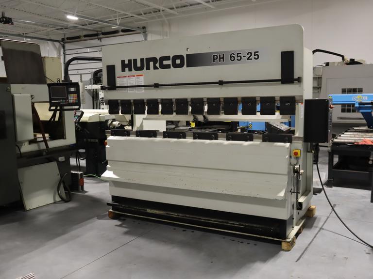 Hurco Hydraulic Press Brake with Hurco Autobend 7 Controls is an up-acting hydraulic press brake. Model PA65-25 has a 71 US Ton Capacity and a 98" Bed and Ram.