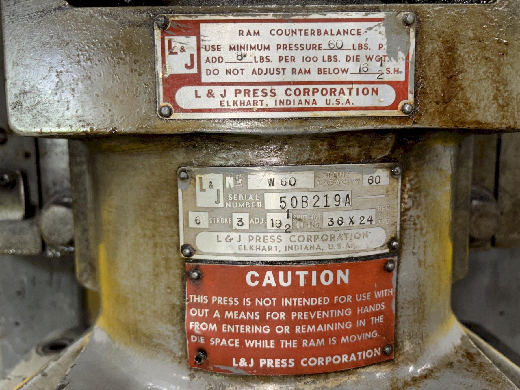 60 TON L&J OBI STAMPING PRESS 6" STROKE: STOCK #23243