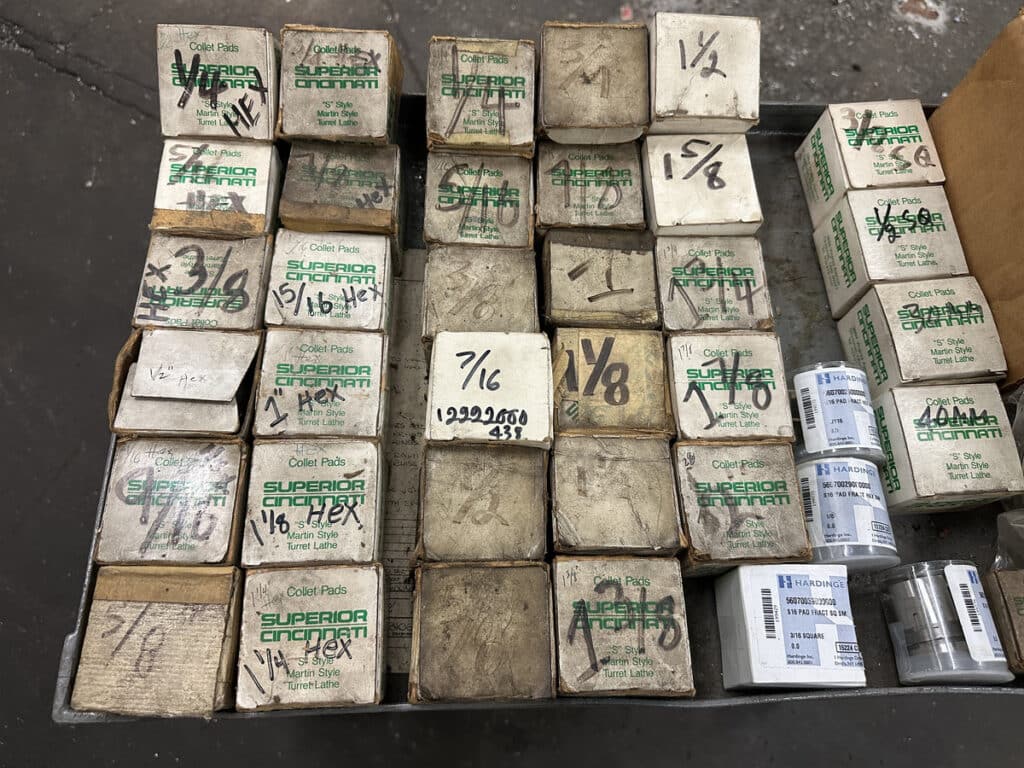 (1) “S” Style Master Collet Chuck, Slit Collet Sleeves, Assorted Collet Pads from Superior Cincinnati and Hardinge