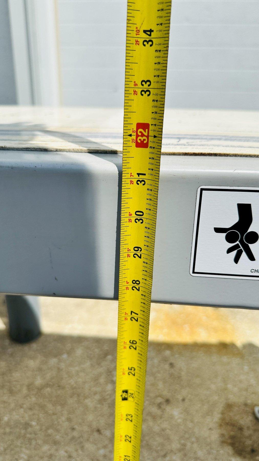 32”H (Top of Belt to Ground) Have some adjustability with feet |