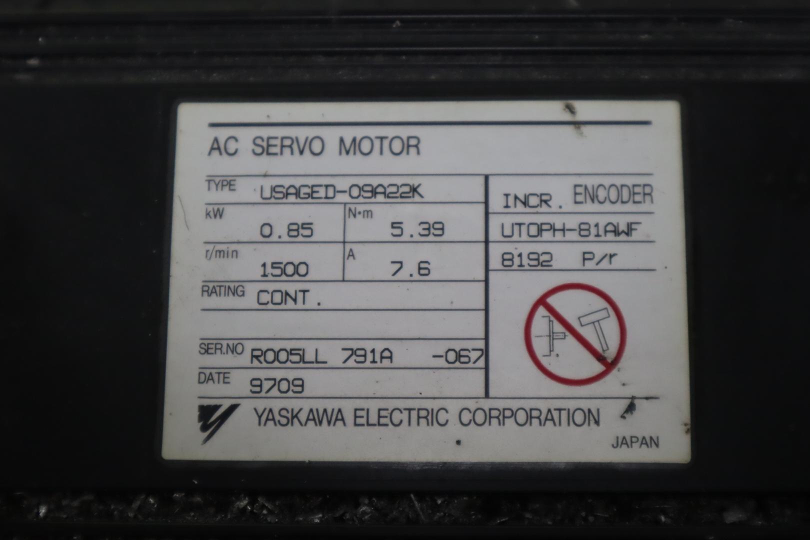 Yaskawa Model USAGED-09A22K Sigma-1 09 (Long) Servo Axis Motor for Haas Part #93-62-0013