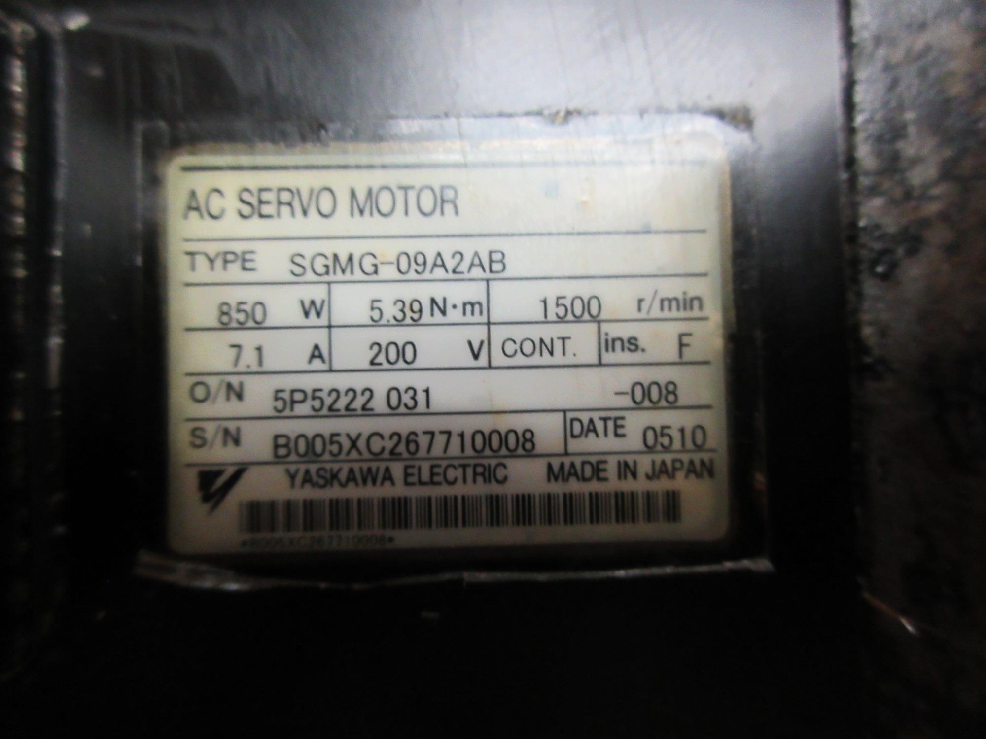 Yaskawa Model SGMG-09A2AB Servo Axis Motor for Haas Part #93-0346 with splined connection shaft
