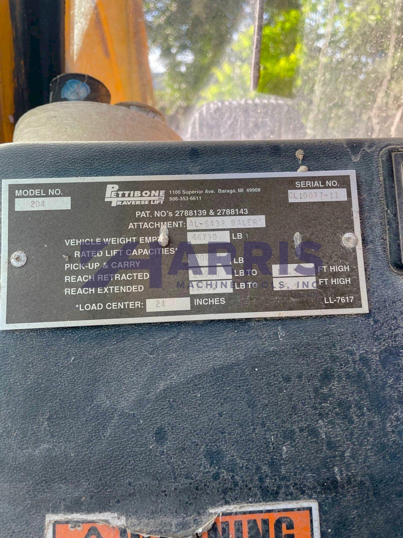 2011 Pettibone Super 20 Carry Lift, 20,000 lb. Rough Terrain Forklift with Pipe Baler