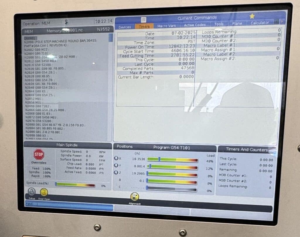Haas CNC Control, 15″ Color LCD Monitor, High Torque C-Axis Live Tool, Haas Bar Feeder, Programmable Tailstock, Live & Standard Tooling, Automatic Tool Presetter, Chip Conveyor, USB Port & Rigid Tapping, Coolant System, High Intensity Lighting, Enclosure Exhaust System, Media Display M-Code, Auto Door, Ethernet Interface, Wifi Connection for Haas Control, Early Power Failure Detection Mode