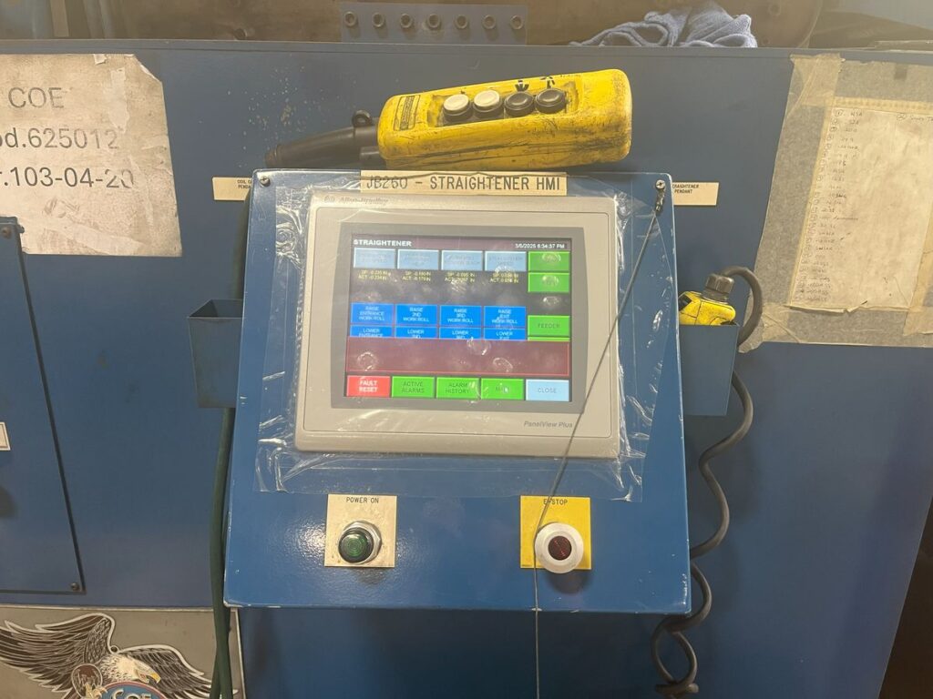 Welty-Way 4 Position Rotational Coil Holder, Coil Cart, Three Leaf Mandrel with Hydraulic Expansion, Straightener, Loop Area, Feeder, Shear