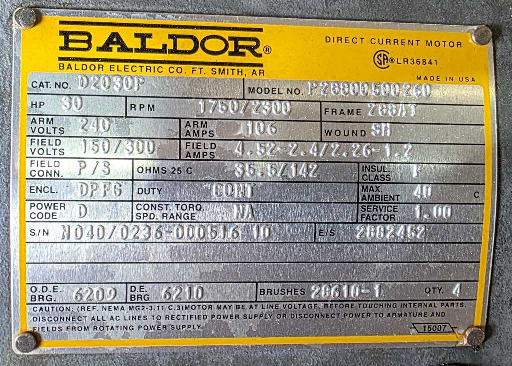 30 HP Baldor DC Motor w/Blower and Siemens Drive