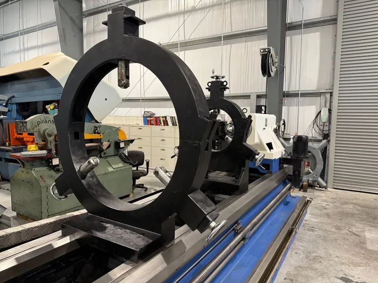 Maximum workpiece between centers- 22,000 Lbs. (supported)