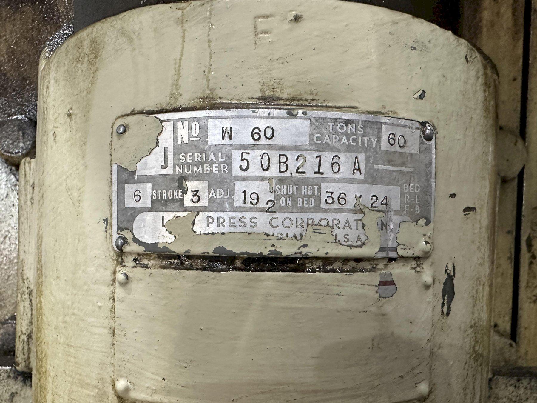 60 TON L&J MODEL #W60 OBI STAMPING PRESS 6" STROKE: STOCK #23648