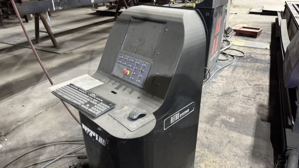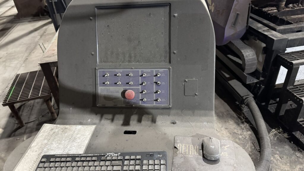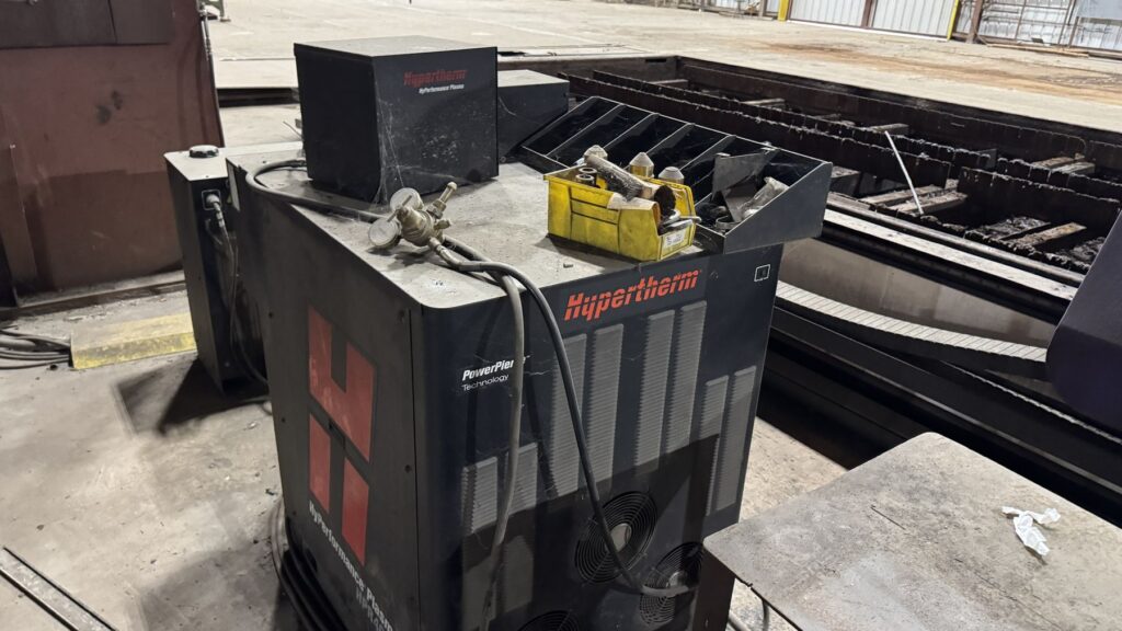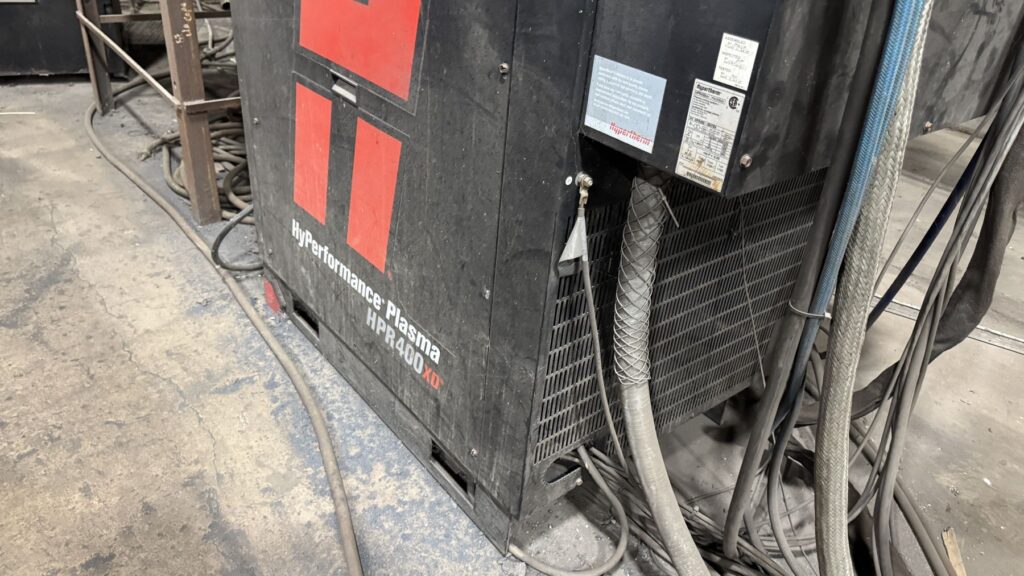 Hypertherm Plasma Edge Connect CNC Control System on Remote Operator Pedestal, Hypertherm HPR400XD Plasma Source, Oxy Fuel Cutting Torch, Integrated Hornet Hydroclean Water Table and a THC with Hornet Cutting Systems Torch Lifter