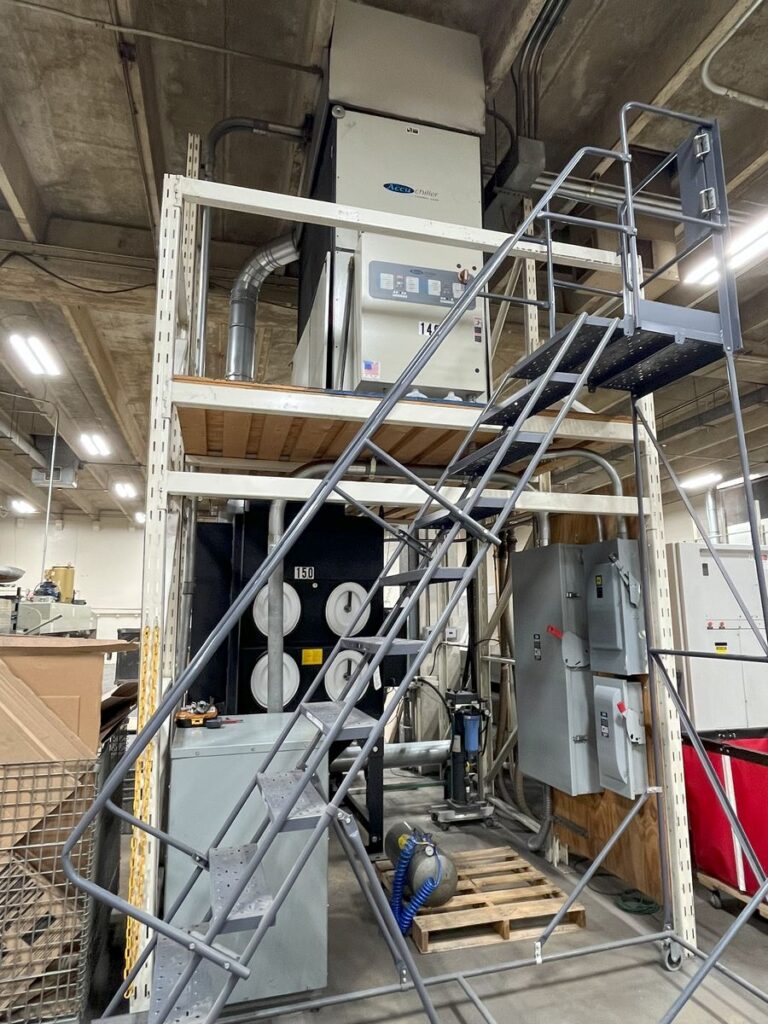 Chiller Unit, Dust Collector, Dual Pallet Shuttle Tables