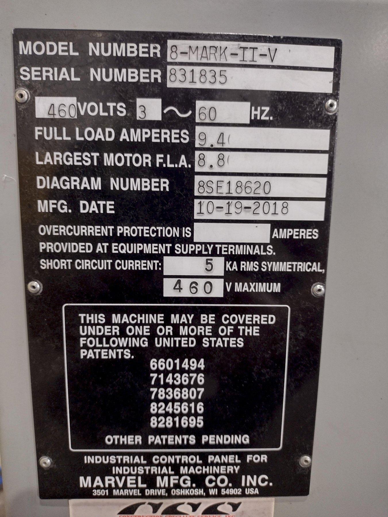 18" X 22" 2018 MARVEL AMADA SERIES 8 MARK II-V VERTICAL TILT FRAME BANDSAW: STOCK #23746